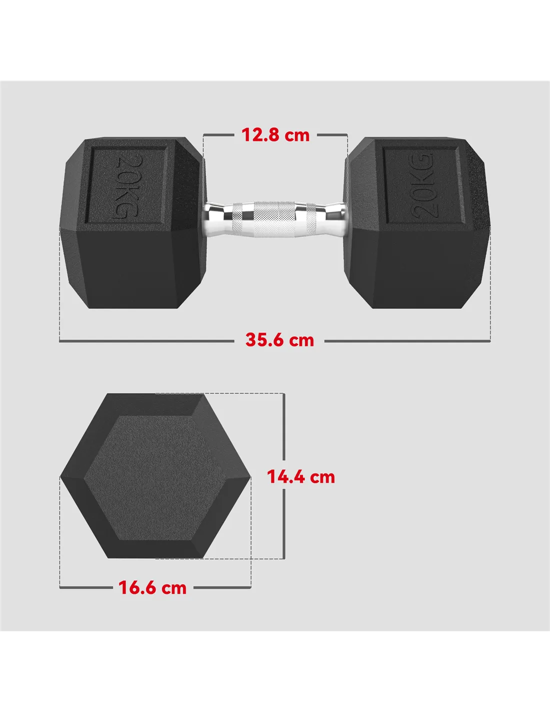 - Dumbbell Head: Φ16.6cm (corner to corner), Φ14.4cm (side to side)