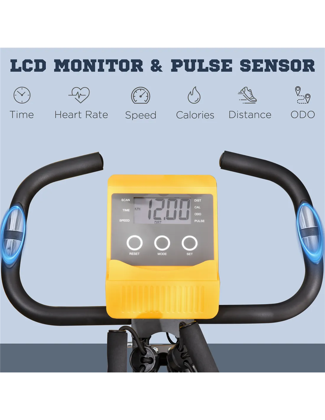 HOMCOM 2-in-1 Folding Exercise Bike with 8-Level Magnetic Resistance, Arm Resistance Band, Pulse Sensor, Yellow