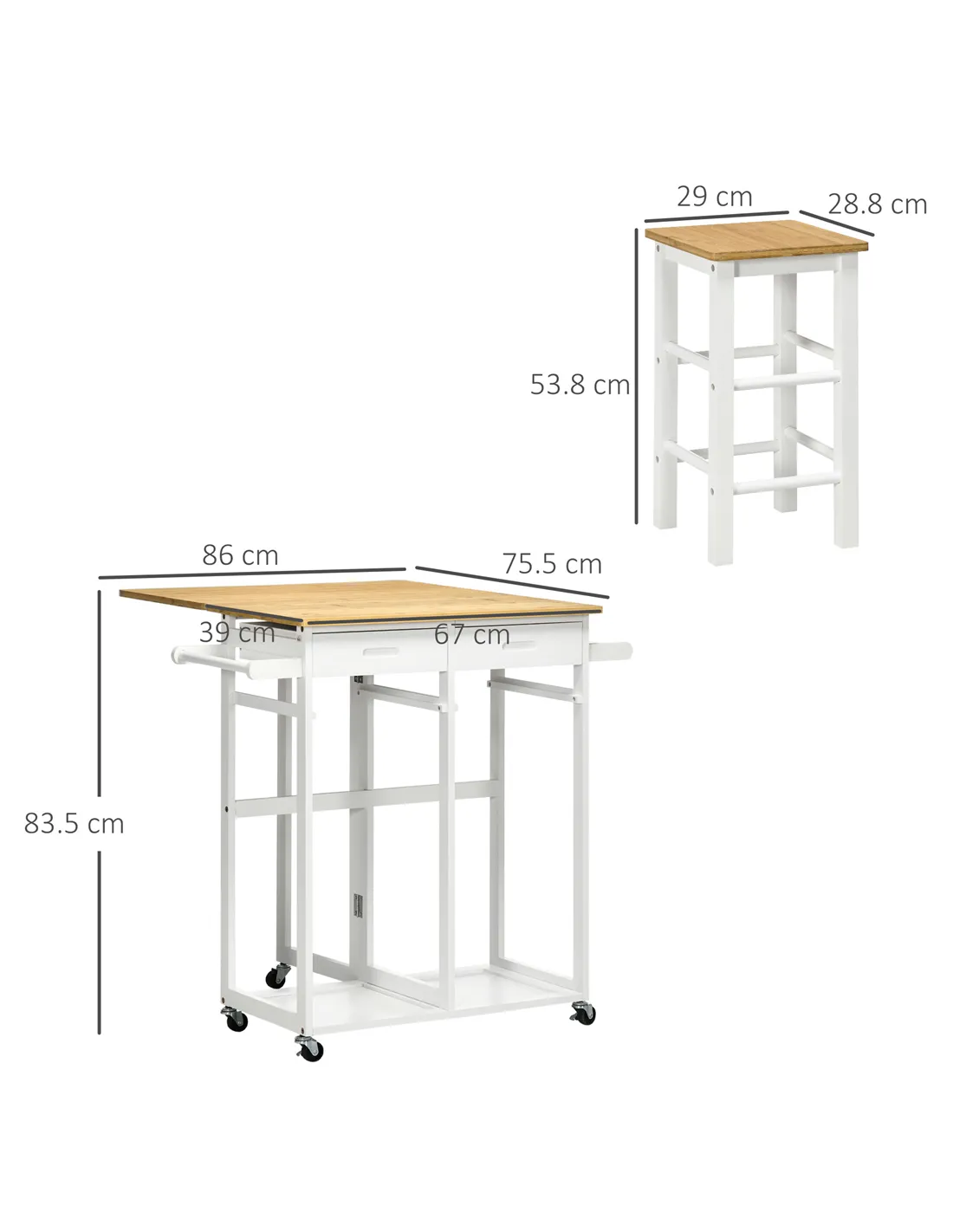 - Q: What are the dimensions of the HOMCOM Kitchen Island Set?