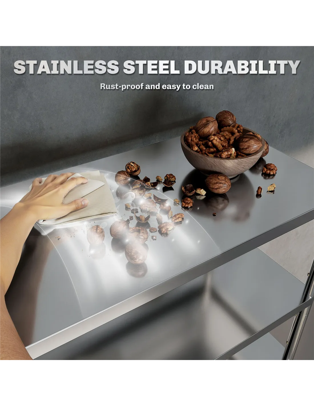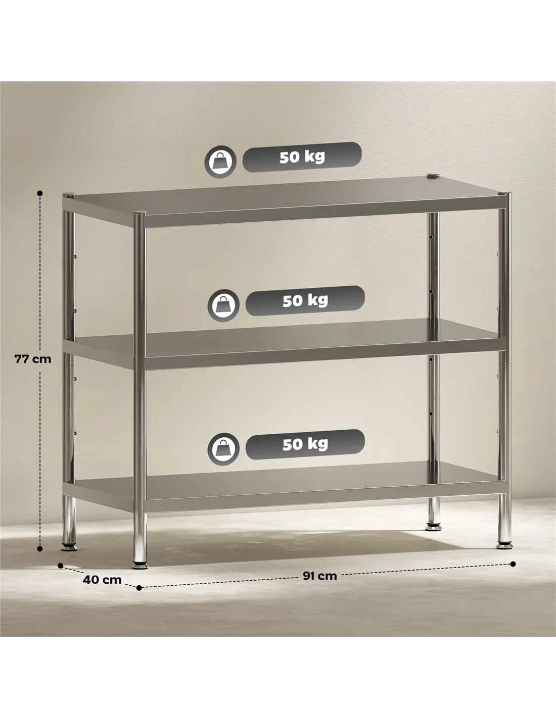- Each shelf supports up to 50 kg, optimal for heavy kitchen items