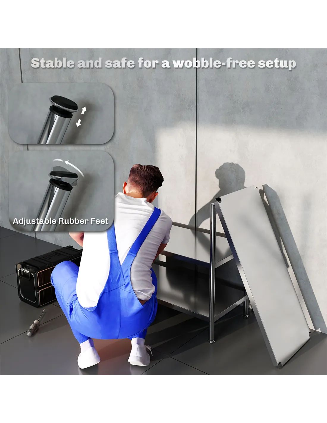 - Adjustable rubber feet keep shelf stable and protect your floors