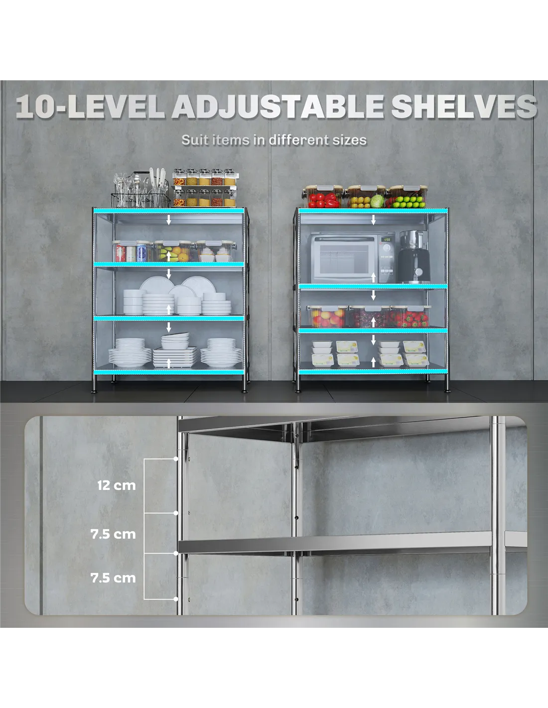 - A: Yes, the shelves offer 10 adjustable height levels. Each shelf supports a maximum load of 50 kg, suitable for heavy kitchen items and appliances.