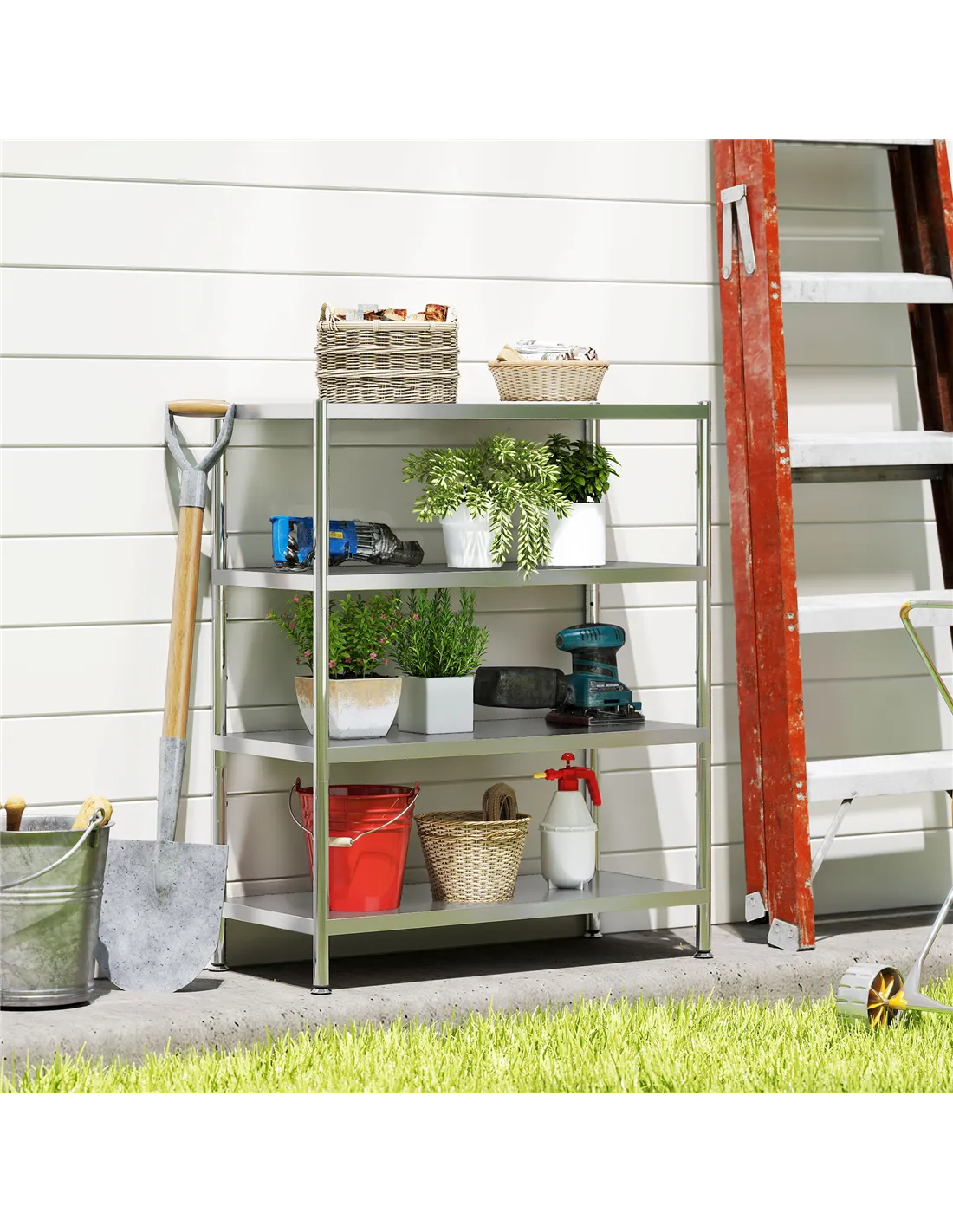 Organise your kitchen effectively with the HOMCOM 4-Tier Bakers Rack, available at FastDaddy. This stainless steel microwave stand offers a practical storage solution for UK homes, especially in small spaces. Made from strong 201 stainless steel, it resists rust and stains, maintaining its silver-tone finish in humid environments. The unit features four spacious shelves, each supporting up to 50 kg, ideal for heavy kitchen appliances, pots, and pans. Ten adjustable height levels allow custom configuration for spices, tall bottles, and various cookware. Achieve a tidy and functional kitchen workspace. This unit ensures stable storage and quick, tool-free assembly, ready for use within minutes.