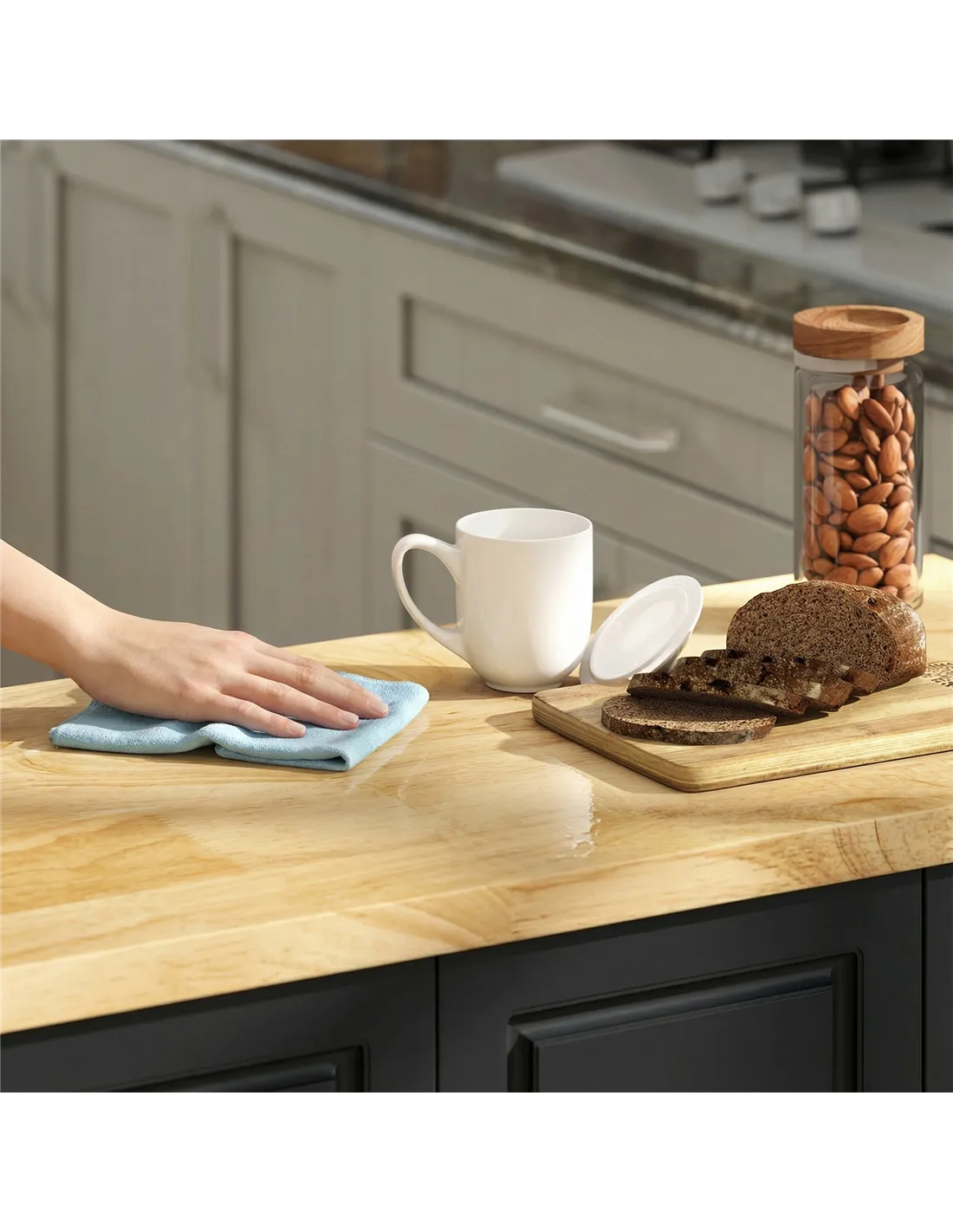 - A: The kitchen island features five caster wheels for easy movement. Two of these wheels include brakes, allowing you to secure the island firmly in its desired position.