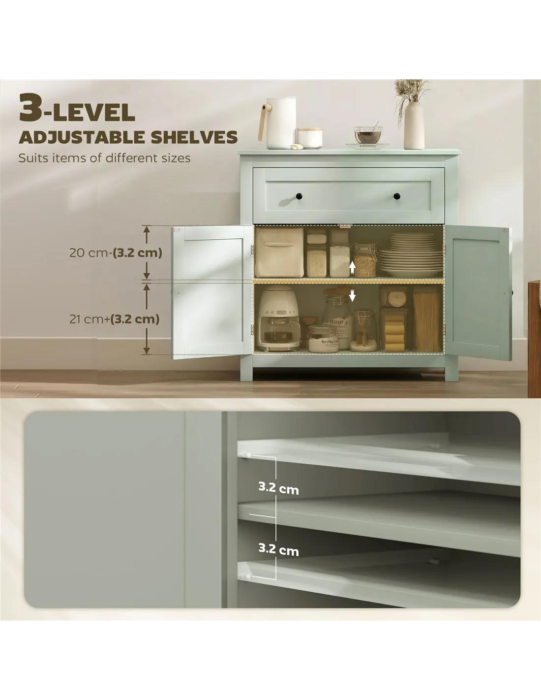 HOMCOM Sideboard Storage Cabinet, Modern Kitchen Cupboard with Adjustable Shelf, Drawer and Double Doors, Green
