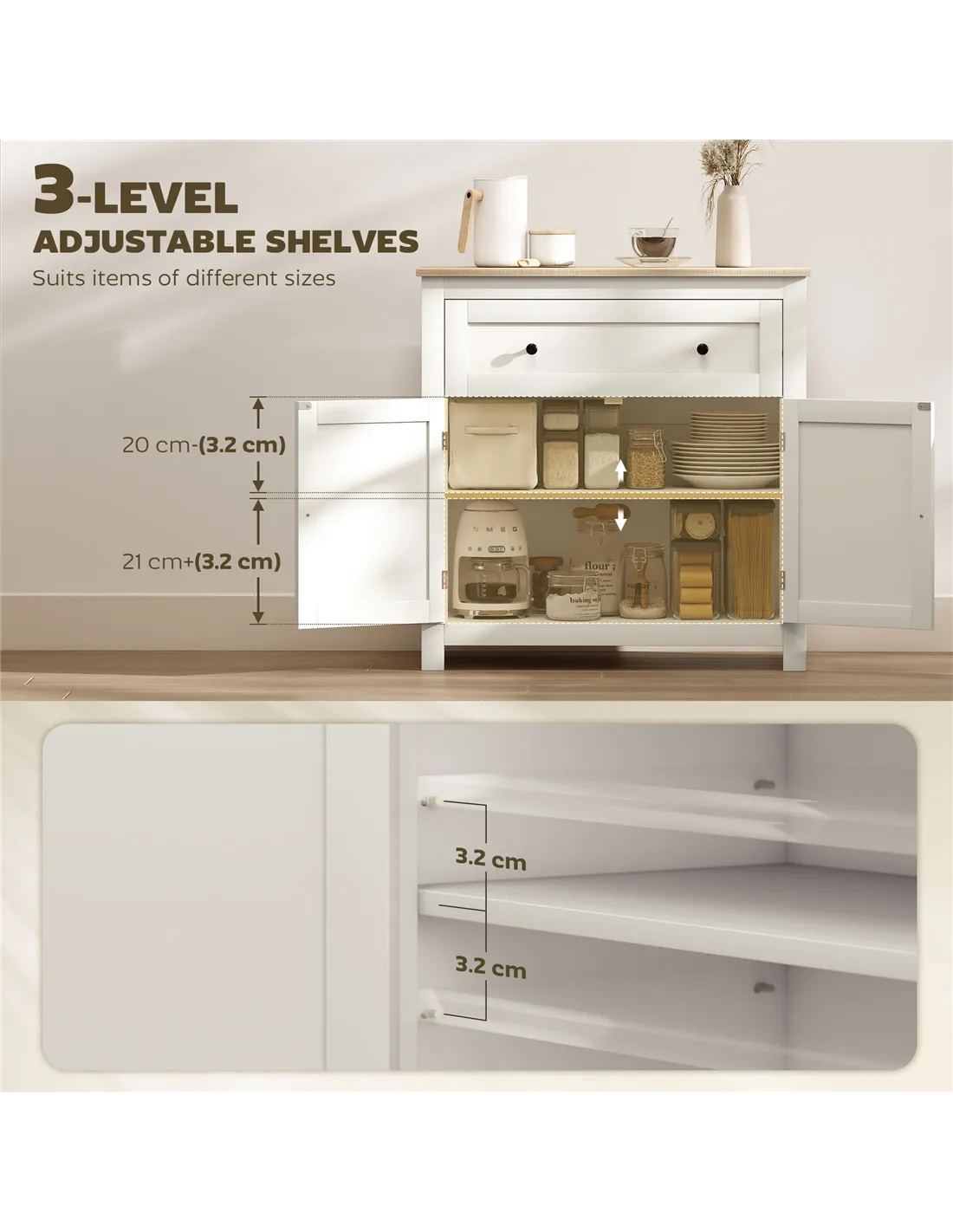 HOMCOM Sideboard Storage Cabinet, Modern Kitchen Cupboard with Adjustable Shelf, Drawer and Double Doors, Cream White