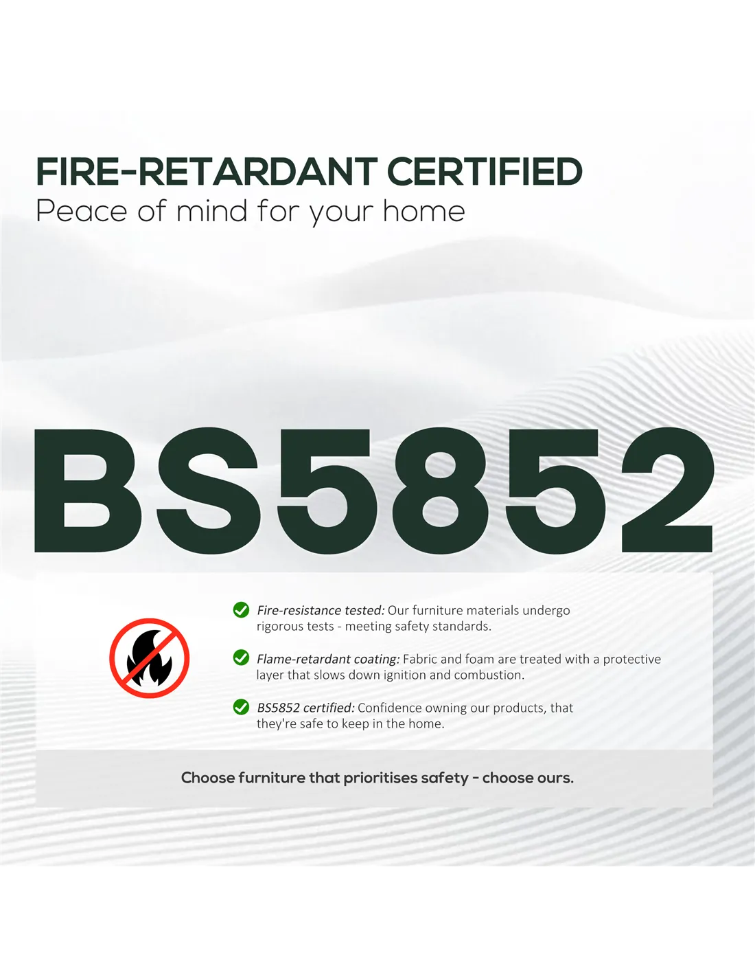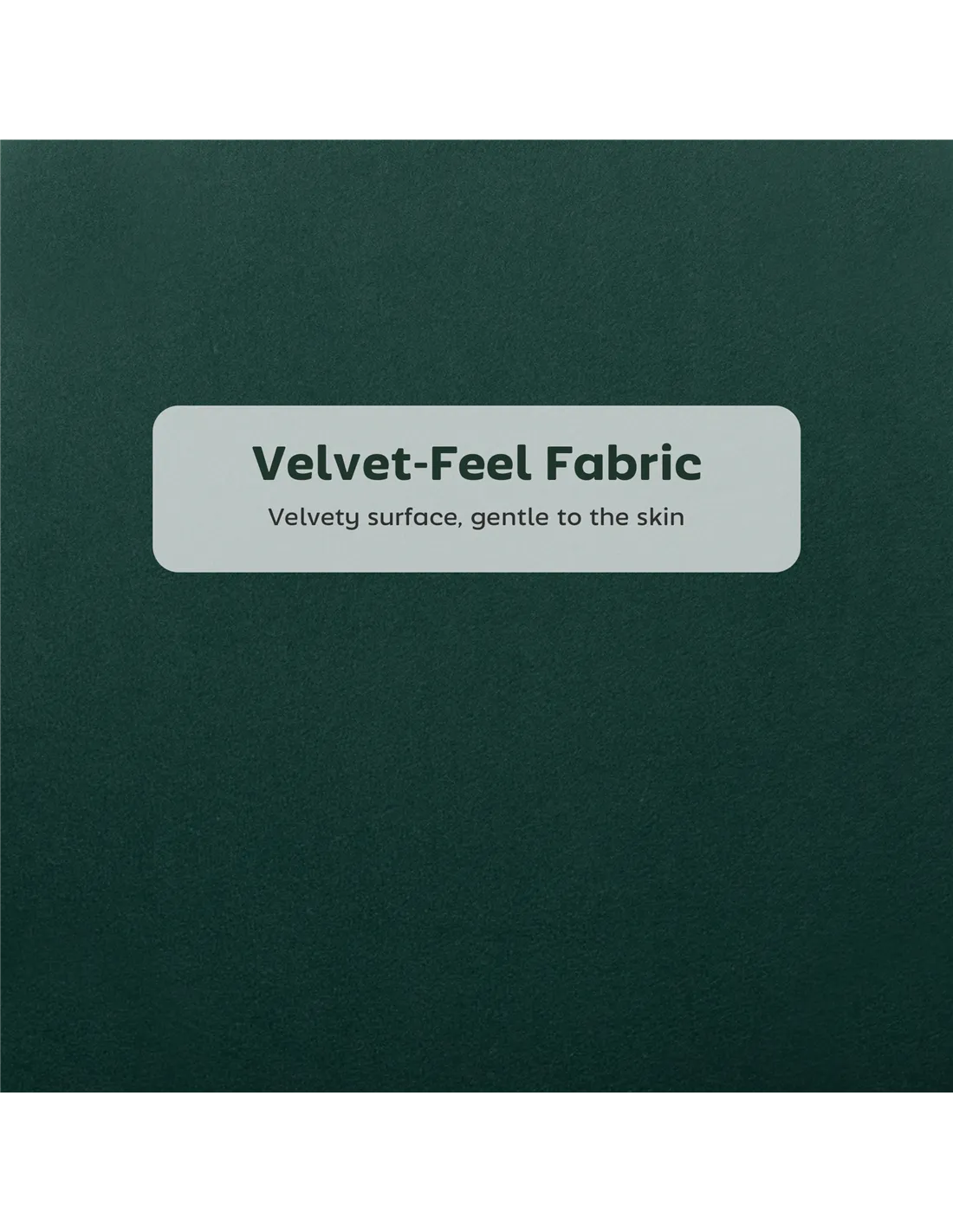 - A: The upholstery features a velvet-feel fabric, made from 100% Polyester. It is also flame-retardant.