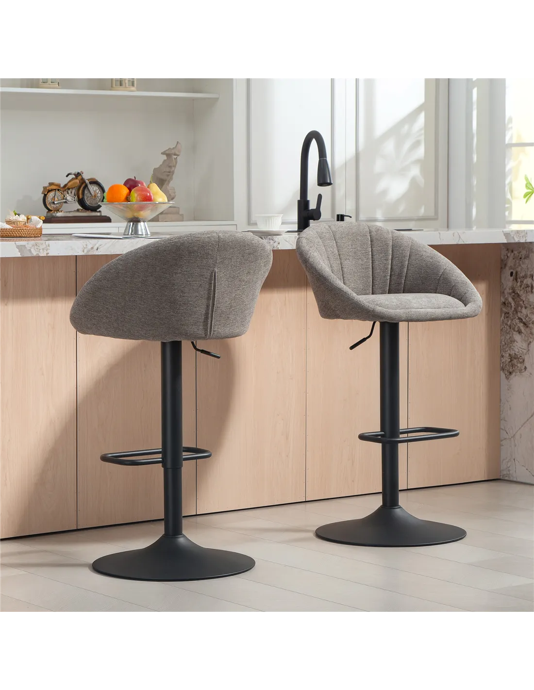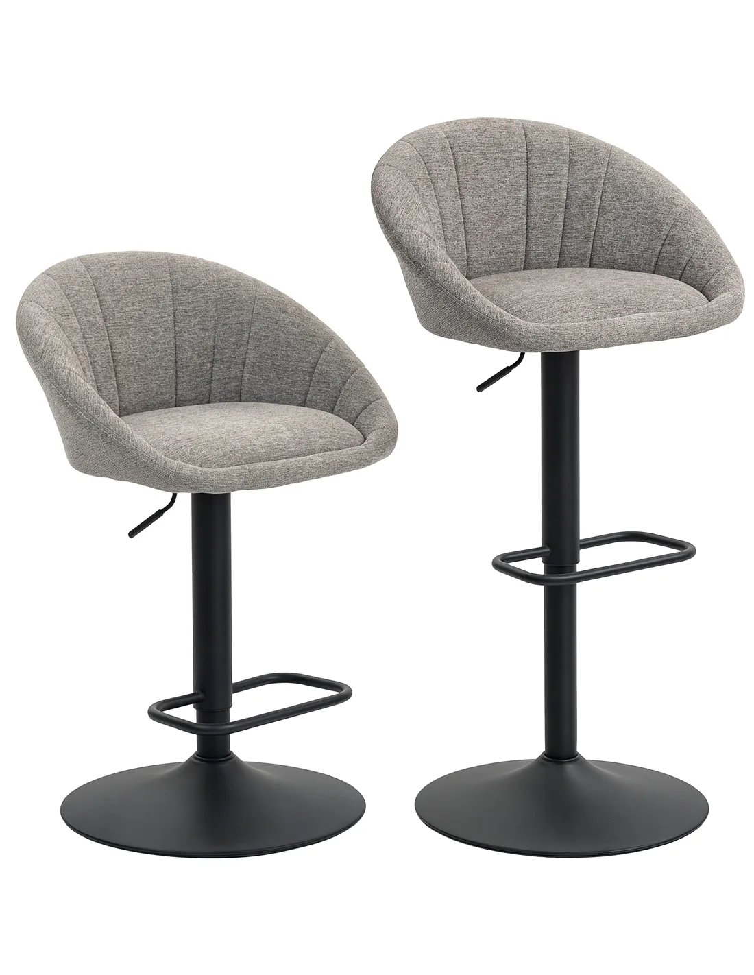 Elevate your kitchen island or home bar with the HOMCOM Set of Two Relaxed Tub Bar Stools in Grey. These modern stools combine everyday comfort with practical functionality, making them a superb addition to any UK home. Adjust the seat height from 62 to 82 cm to suit various counter levels, ensuring a comfortable seating position for everyone. The 360° swivel movement supports natural body motion, reducing strain during prolonged use. Upholstered in stylish, flame-retardant grey linen-look fabric with high-density sponge filling, these stools provide lasting comfort. A robust steel frame and a large base ensure stability and durability, complete with floor protection.
