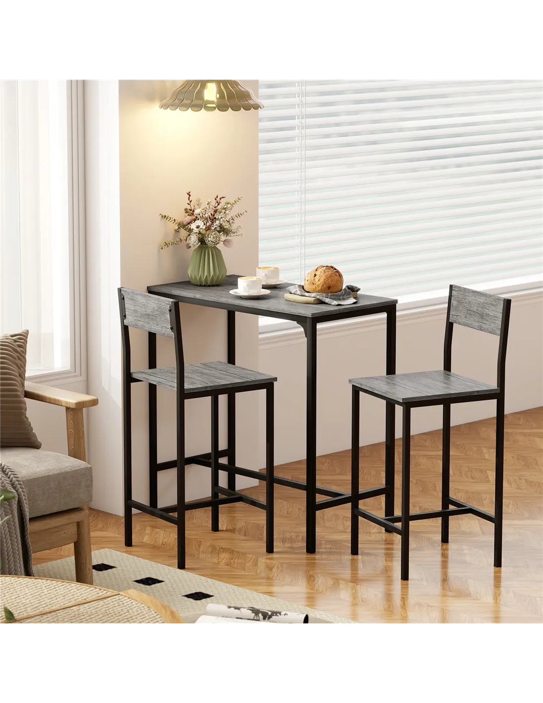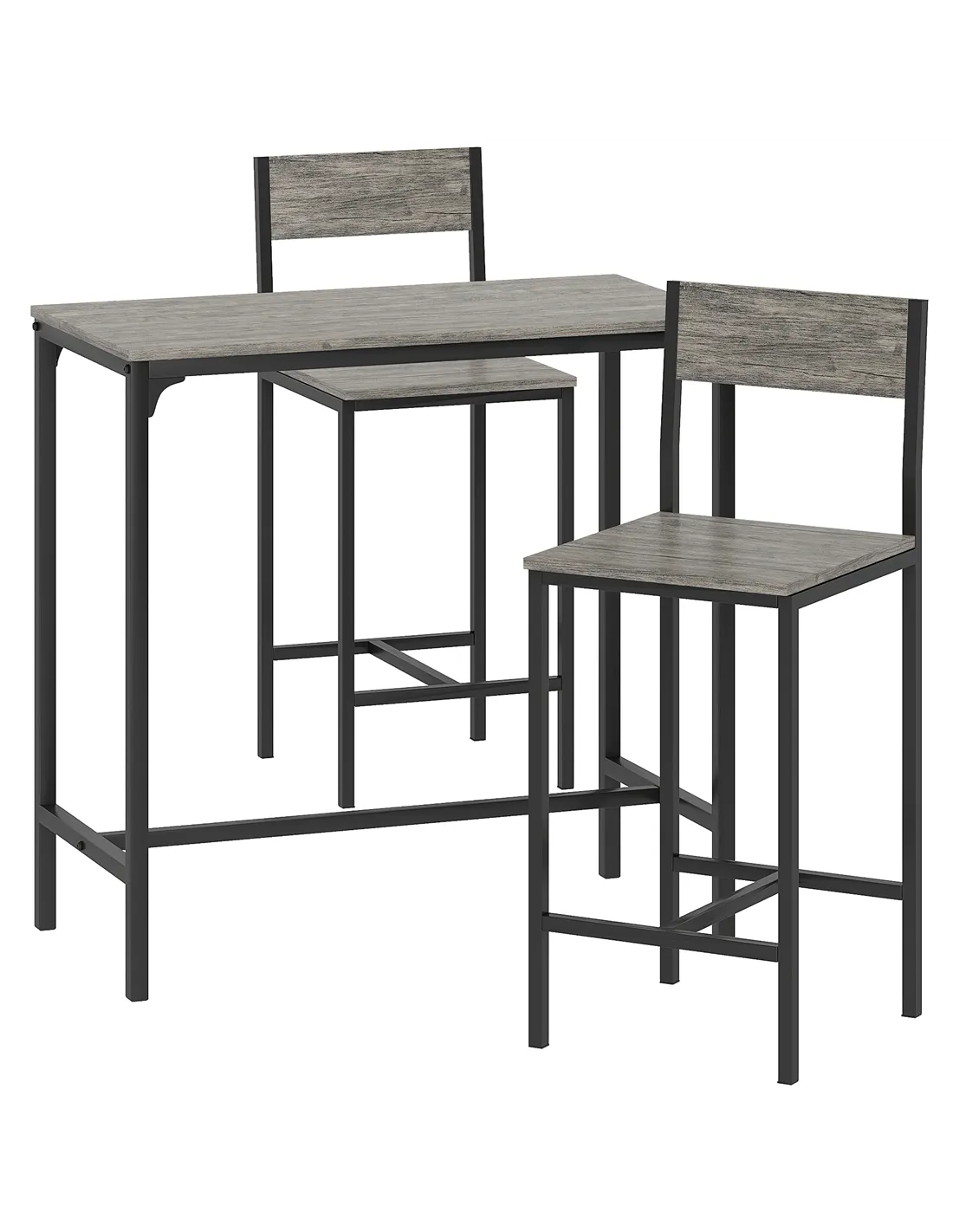 Enhance your home with the HOMCOM 3-Piece Bar Table Set, an ideal industrial breakfast bar solution for modern living. This complete set includes a sleek rectangular table and two stools, perfectly suited for dining rooms or areas with limited space. Constructed from robust MDF and a durable metal frame, this bar set offers lasting stability and use. The two stools provide superior comfort, featuring supportive backrests and integrated footrests for relaxed meals or drinks. Its distinctive charcoal grey and black metal design introduces a contemporary industrial aesthetic to your interior. Engineered for practical living, the stools tuck away neatly beneath the table, maximising floor space. This design ensures your area remains functional and organised, making it a clever addition to any UK home requiring efficient space utilisation.
