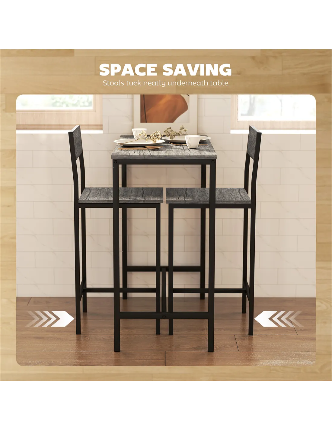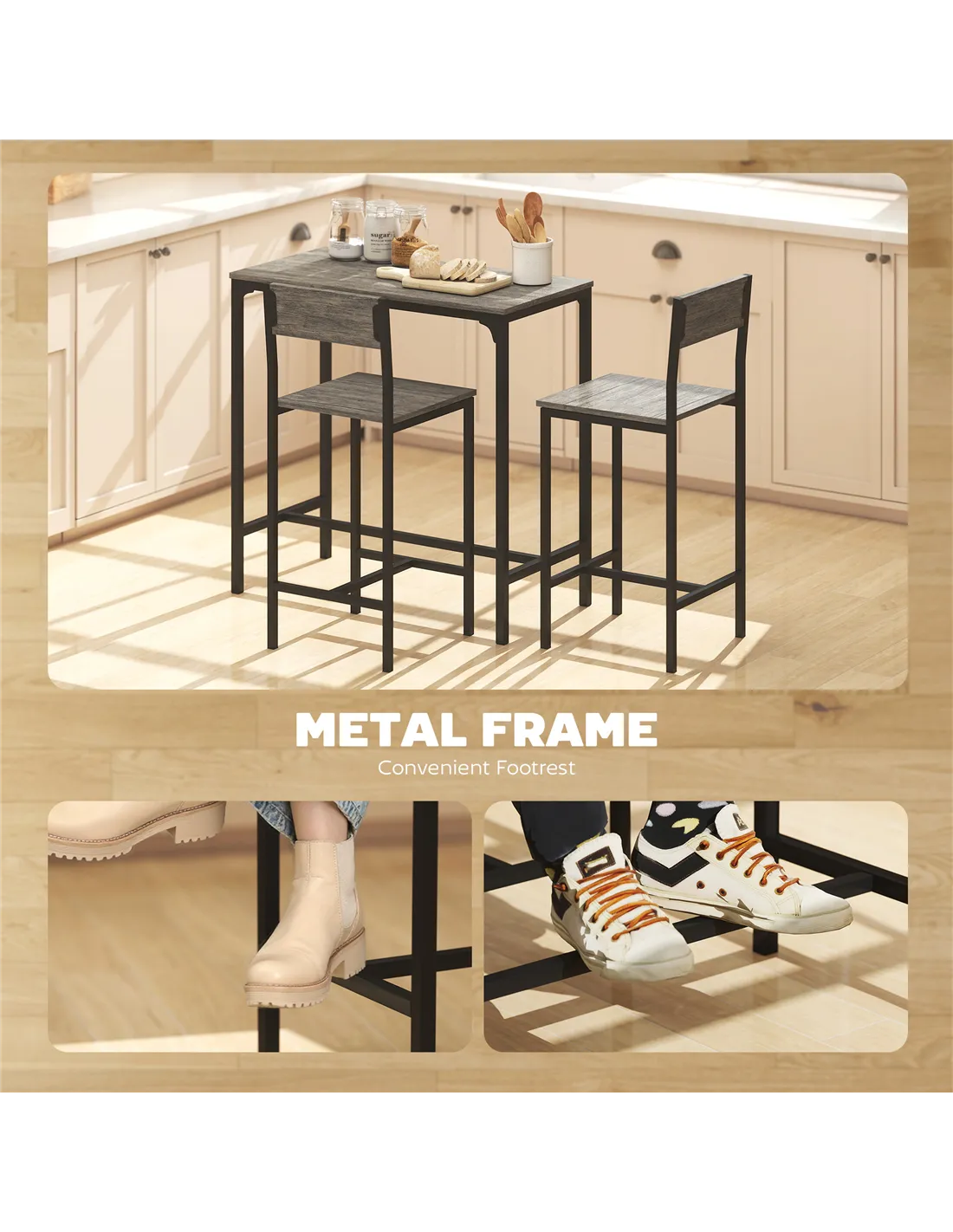 HOMCOM 3-Piece Bar Table Set with 2 Stools, Industrial Breakfast Bar Set with Footrest, Backrest for Dining Room, Small Space