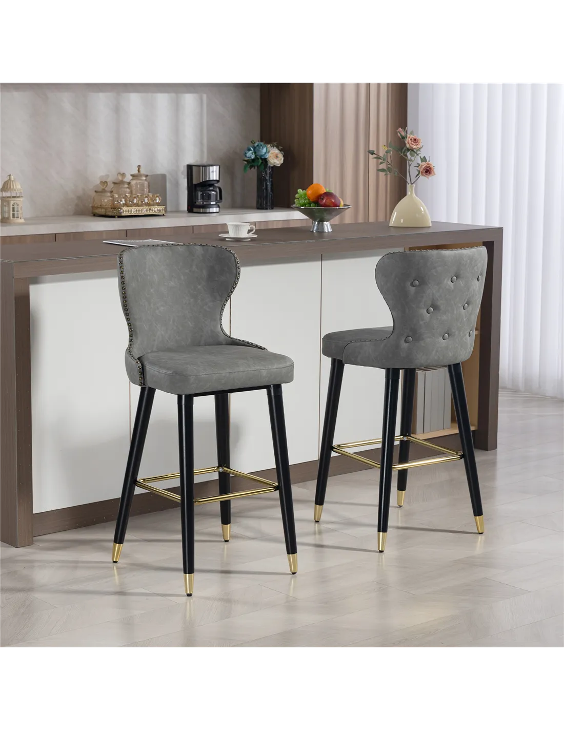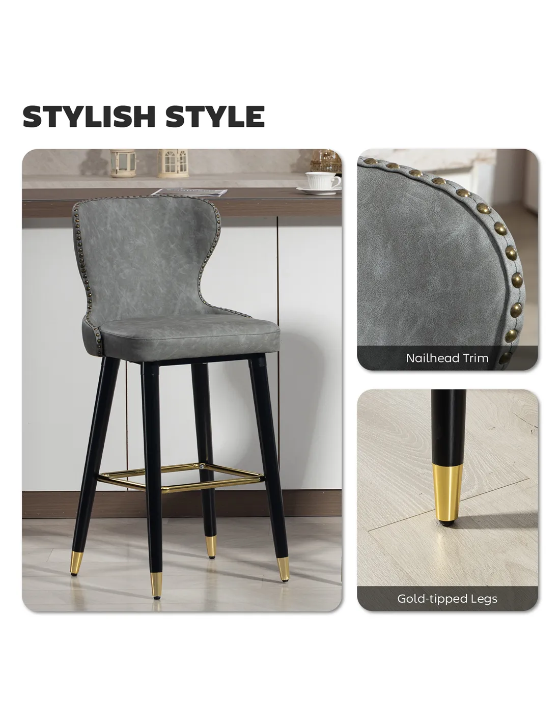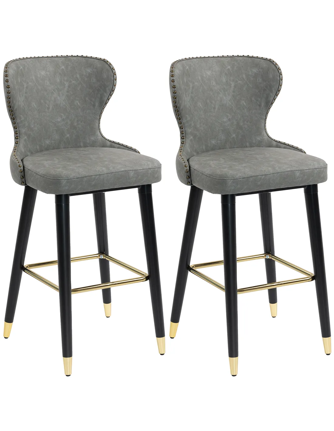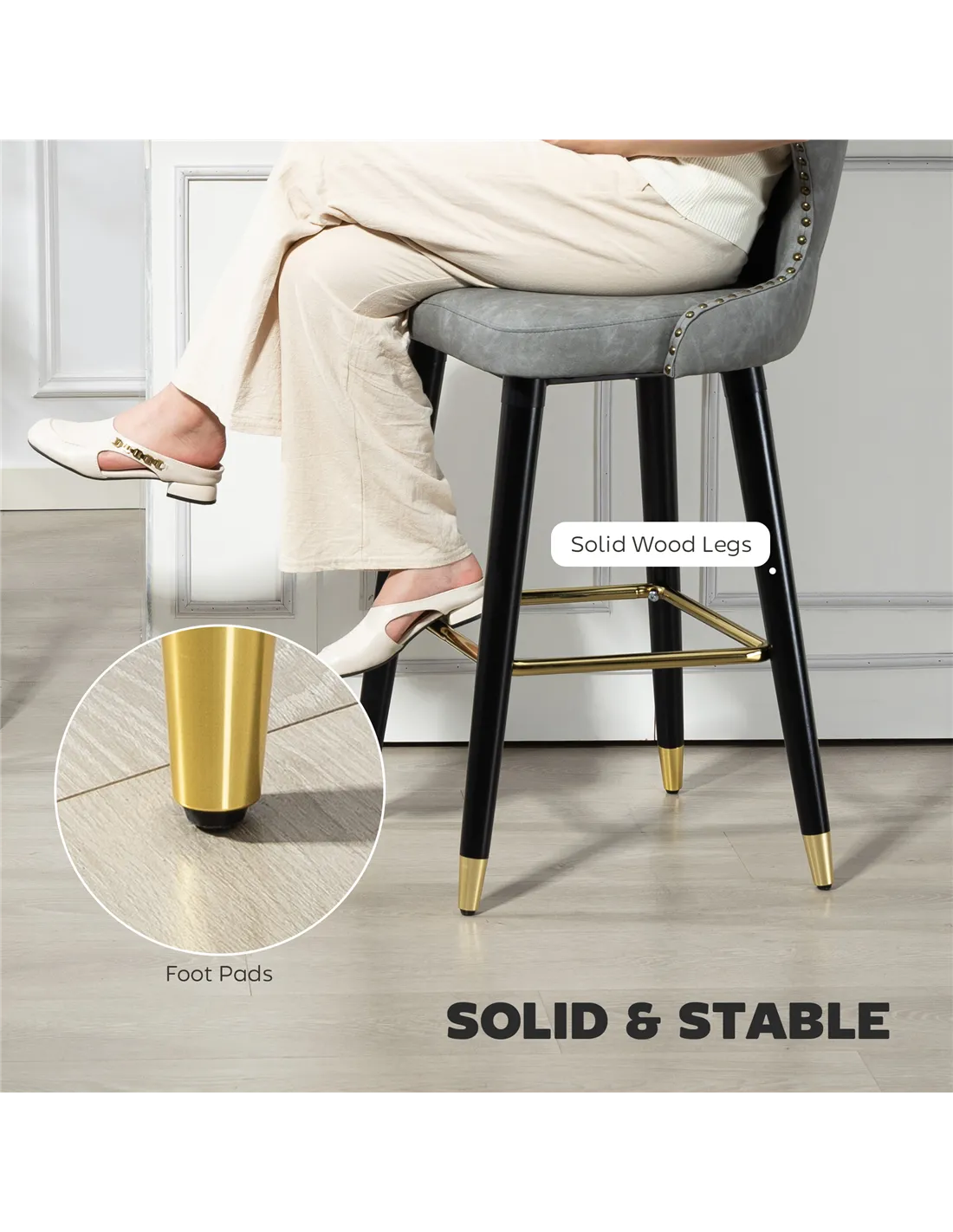 HOMCOM Bar Stools Set of 2, PU Leather Barstools with Back, Footrest and Wood Legs for Kitchen, Counter, Breakfast Bar, Grey