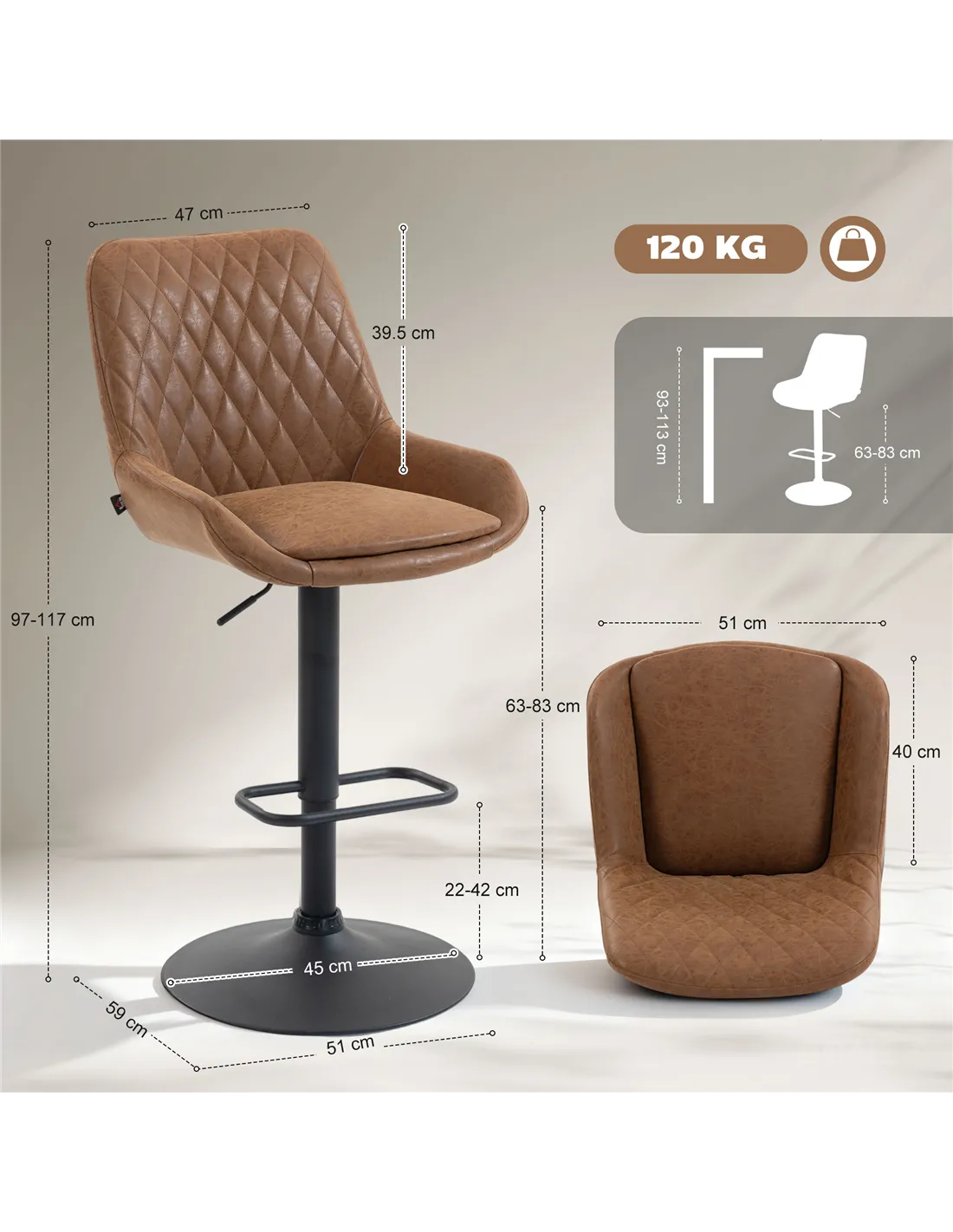 - Suitable Bar Table Height: 93-113 cm
