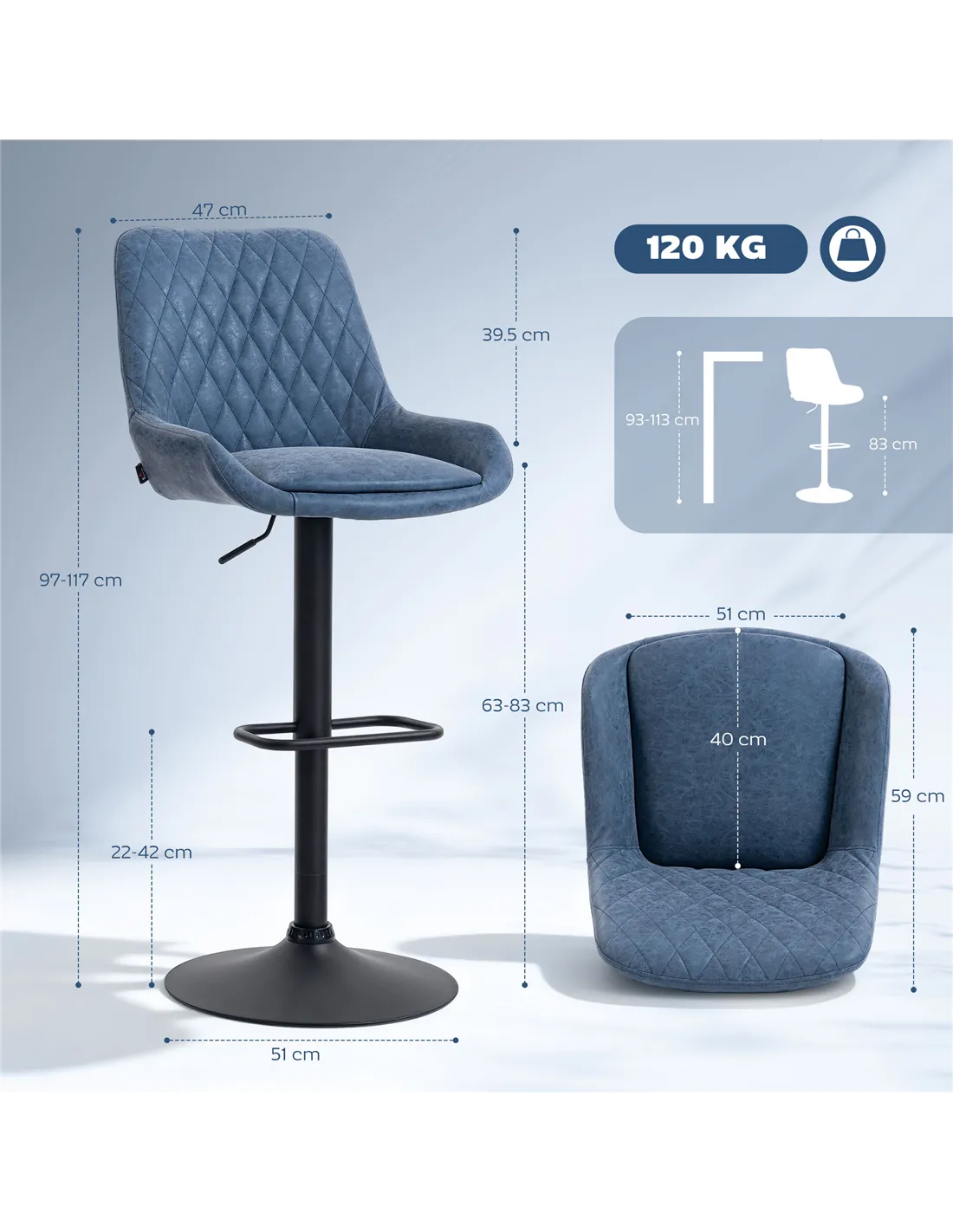 - Suitable Bar Table Height: 93-113 cm