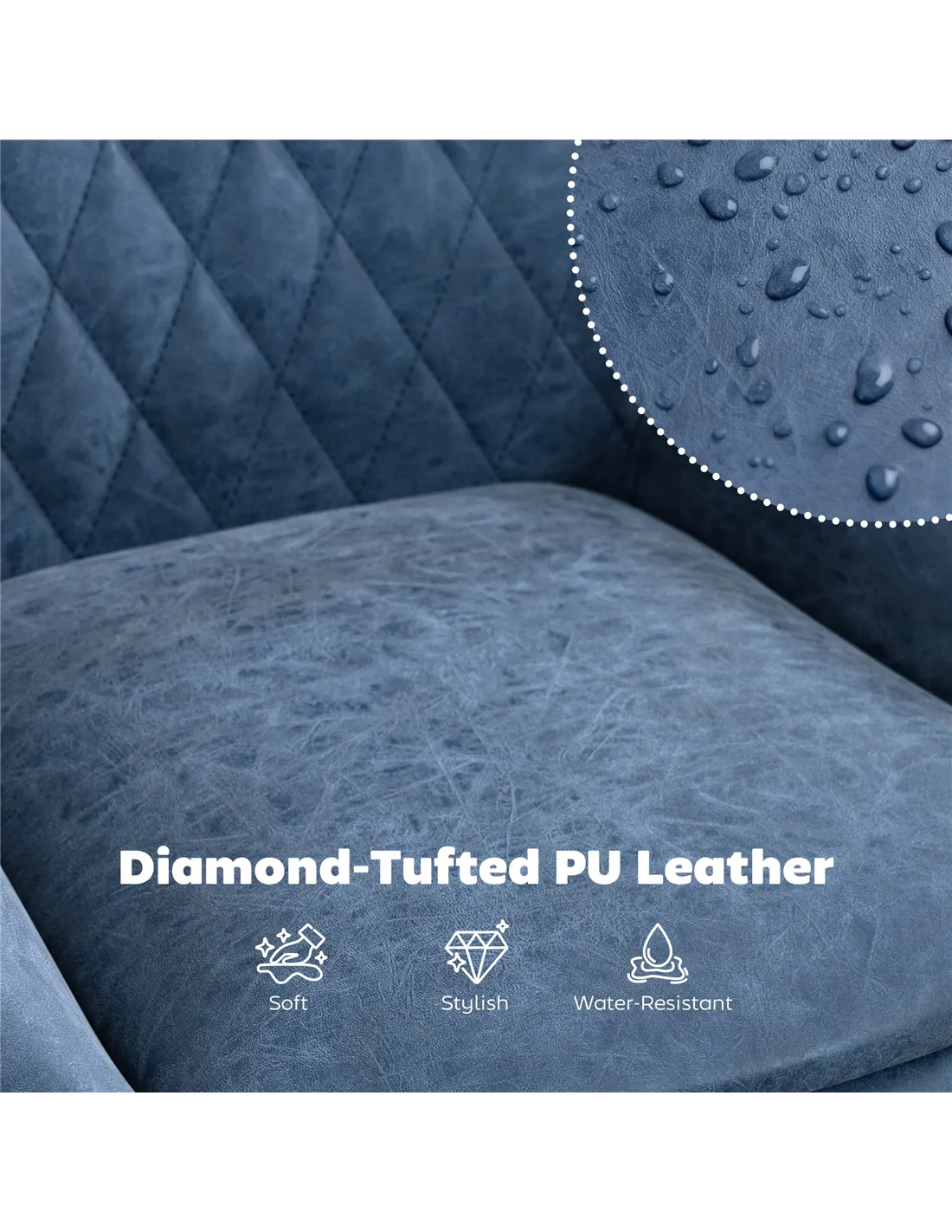 - Faux leather upholstery with diamond tufting for cool style
