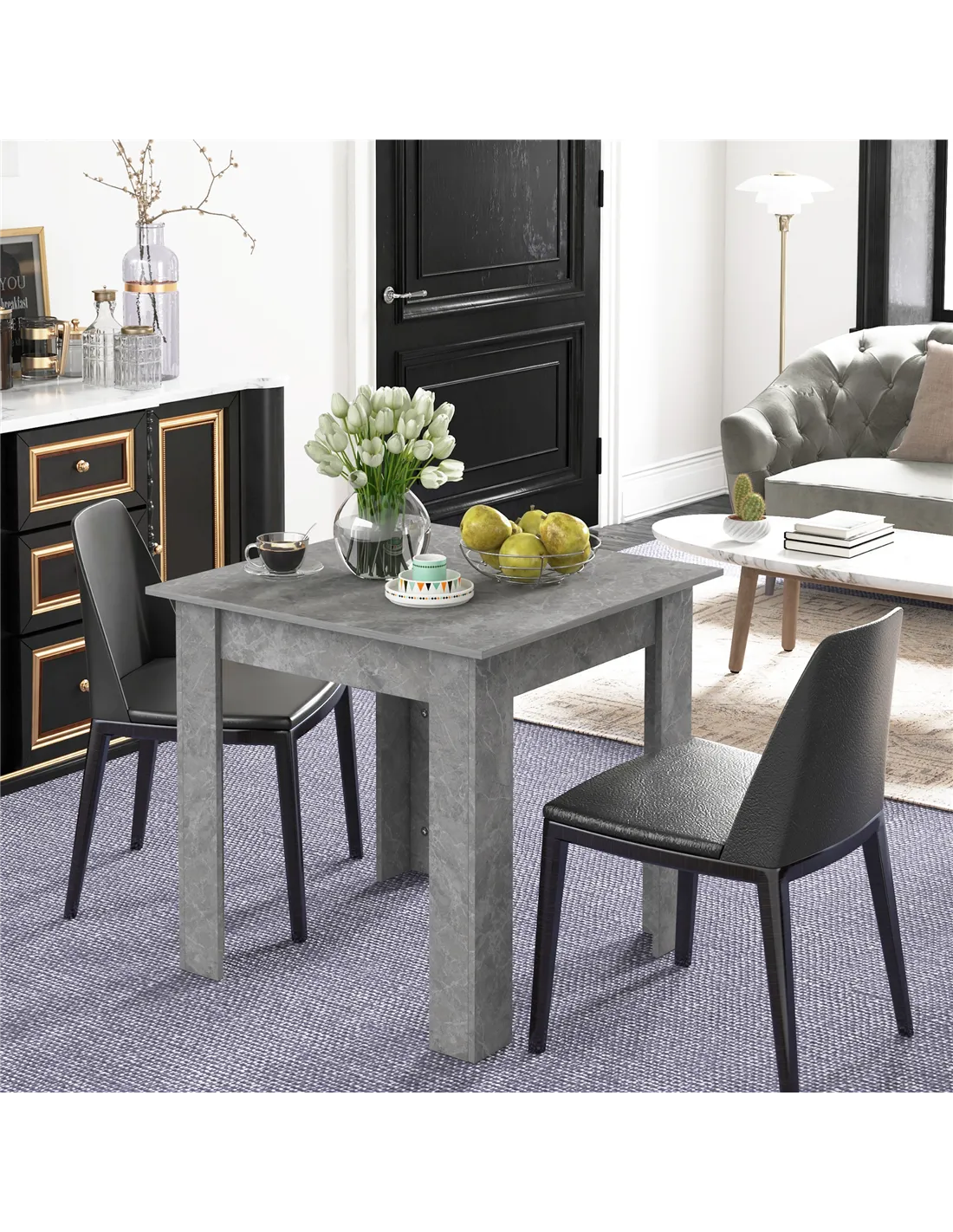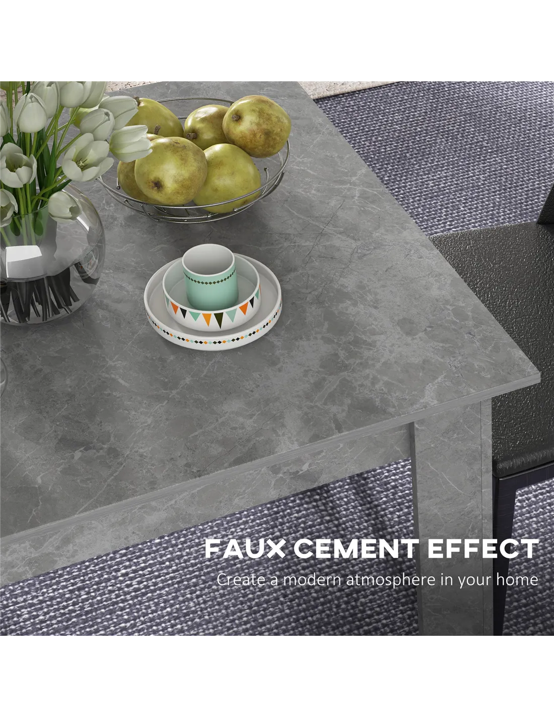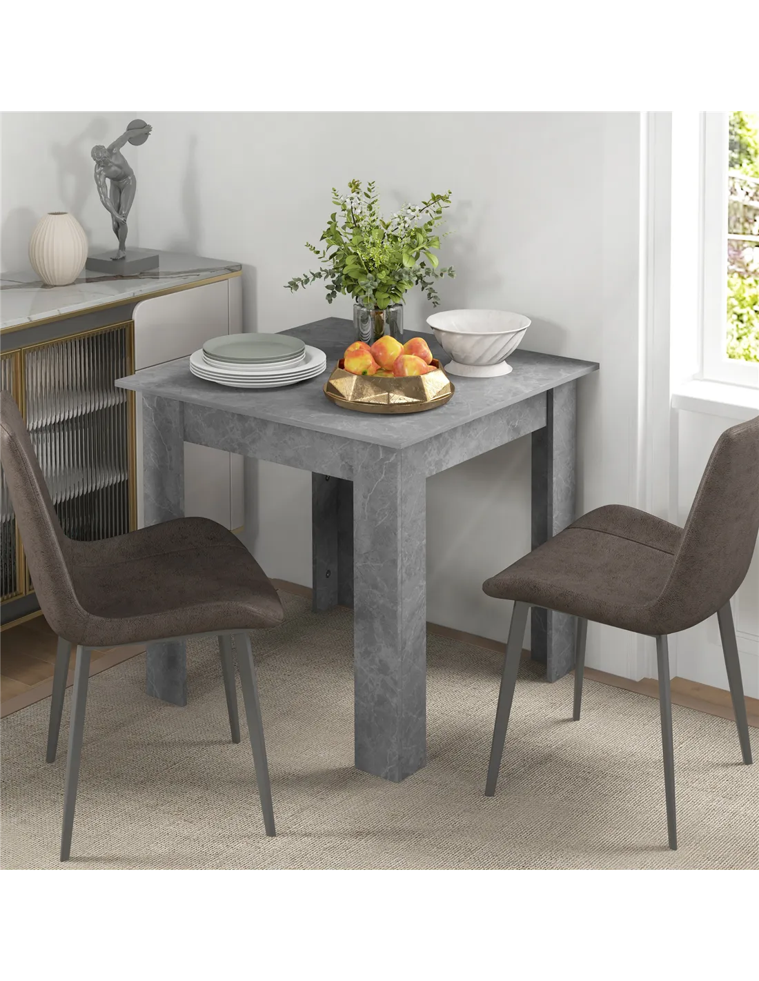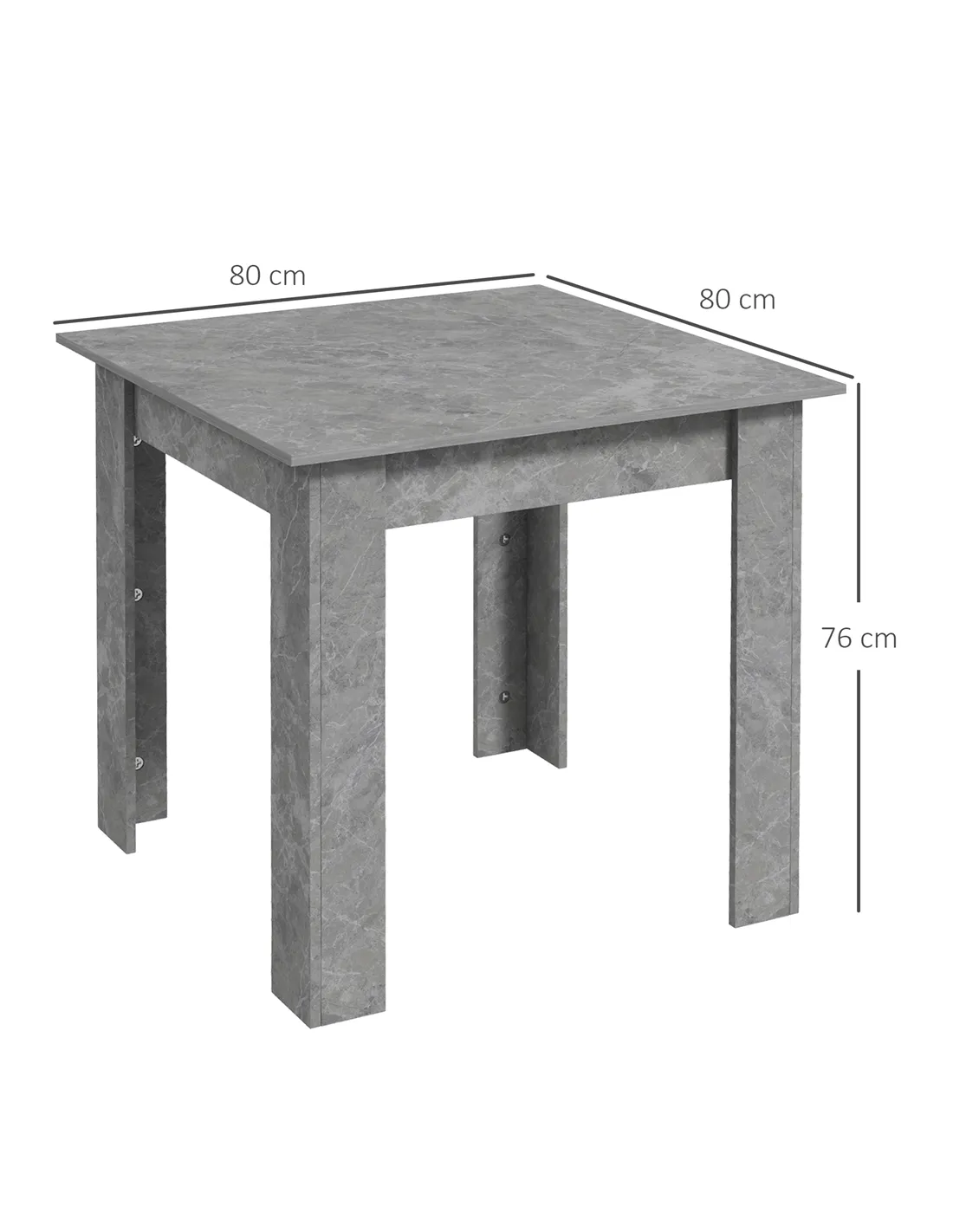 Elevate your home with the HOMCOM Square Dining Table, a modern solution for compact living. This small dining table features a contemporary faux cement effect, bringing urban style to any UK kitchen or dining space. Designed with space-saving in mind, it comfortably seats two people. This makes it an ideal choice for flats or smaller households. Construction uses durable melamine-coated particleboard, ensuring long-lasting performance and easy cleaning. Non-slip foot pads offer essential stability and protect your floors from scratches. Use this versatile table for meals, as a coffee station, or as a functional work surface. Its sleek cement grey finish integrates seamlessly with various interior designs, providing a practical and stylish addition to your living area. Experience smart design and enduring quality for everyday use.