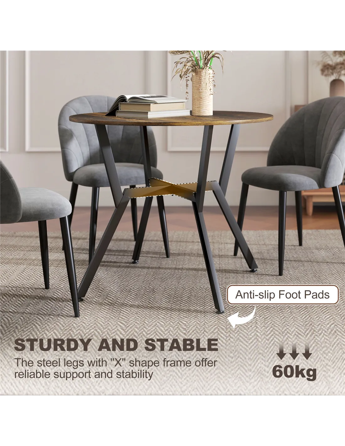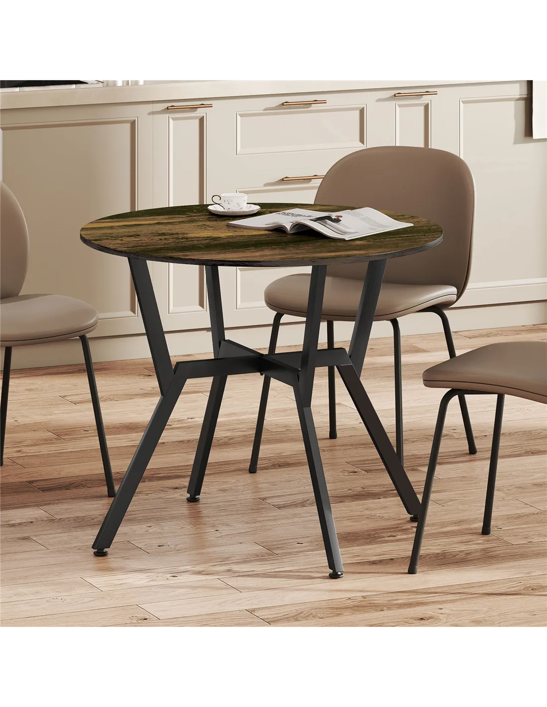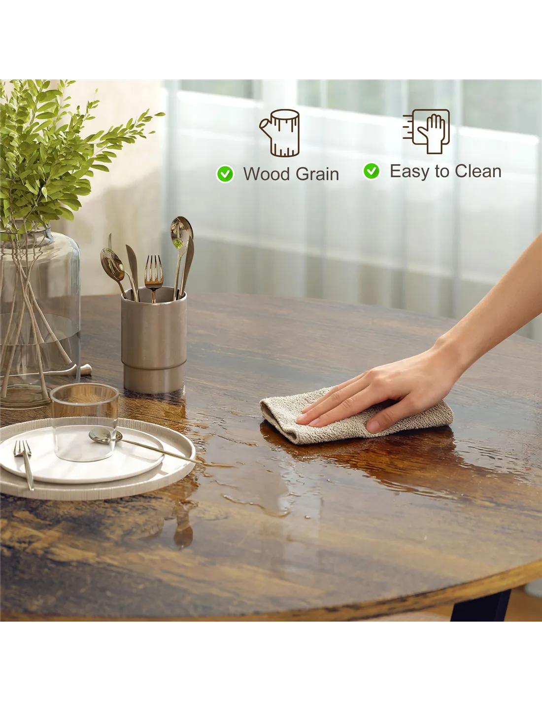 The HOMCOM Round Dining Table in Rustic Brown brings functional elegance to your UK home. This 90 x 76 cm kitchen table features a durable wood-effect particleboard top, complemented by sleek black steel legs. Its circular design comfortably accommodates two, creating an inviting space for dining or daily activities. The robust metal frame provides a strong, supportive base, enhanced by a middle cross bar for superior stability. Anti-slip foot pads prevent floor scratches, making this versatile piece ideal for your living room, dining room, or even a hallway. With a maximum load capacity of 60 kg, this table offers reliable performance. It combines classic aesthetics with modern durability, establishing a practical focal point. Assembly is straightforward, ensuring a quick setup for immediate use.
