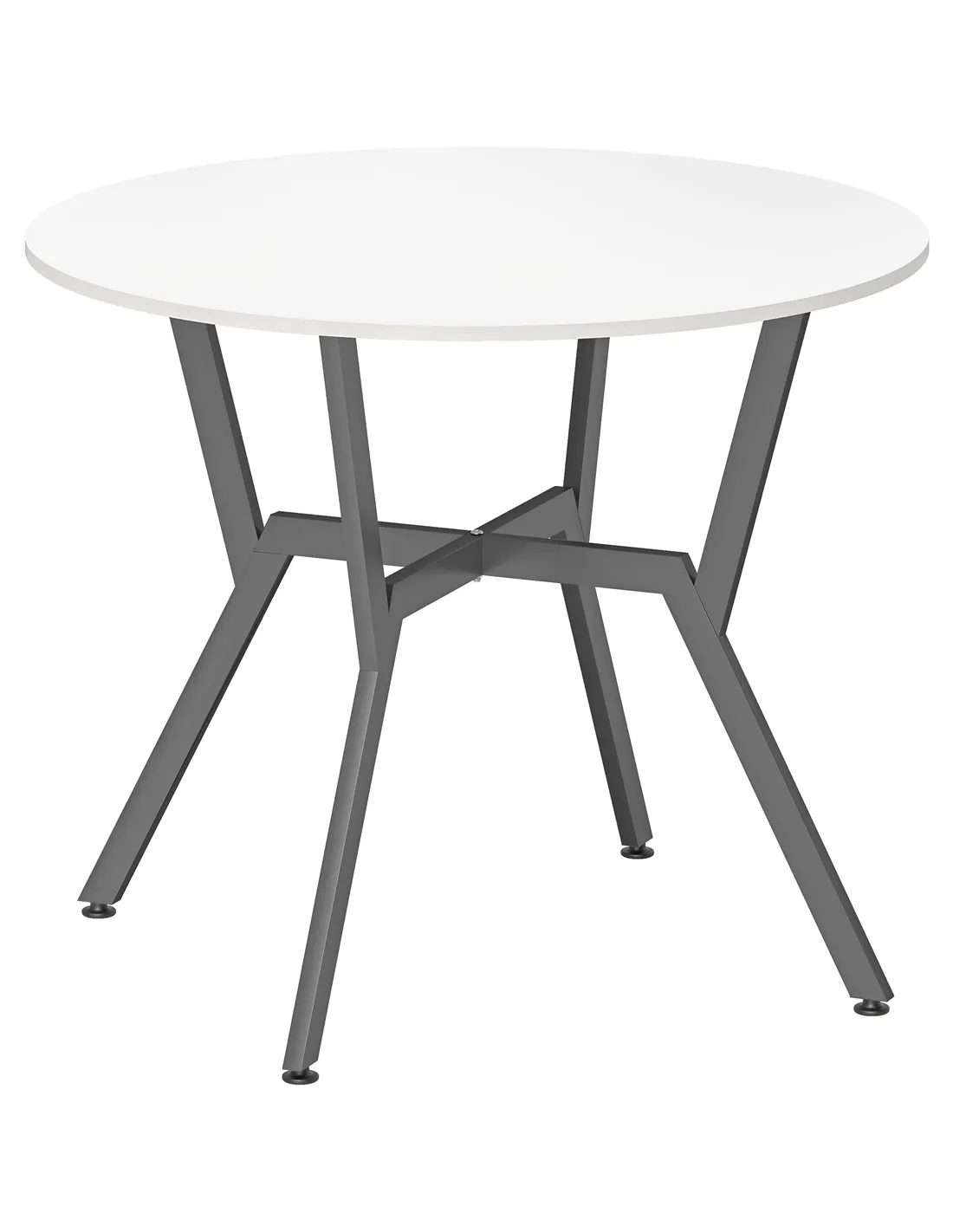 - A: The table features a high gloss white particleboard top and a black steel frame.