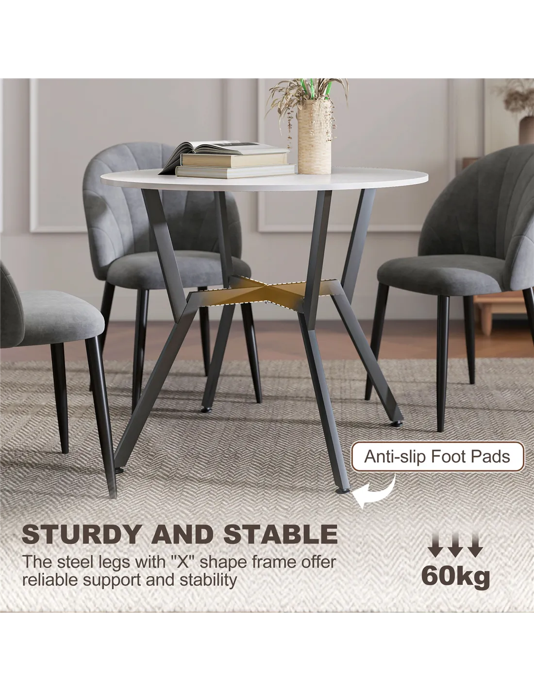 - Anti-slip foot pads to gently protect floor