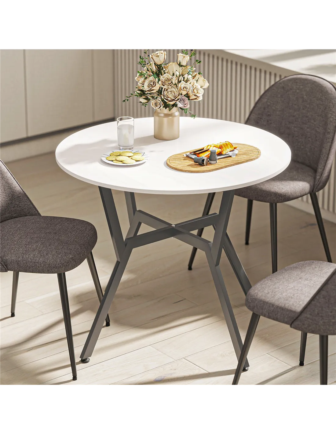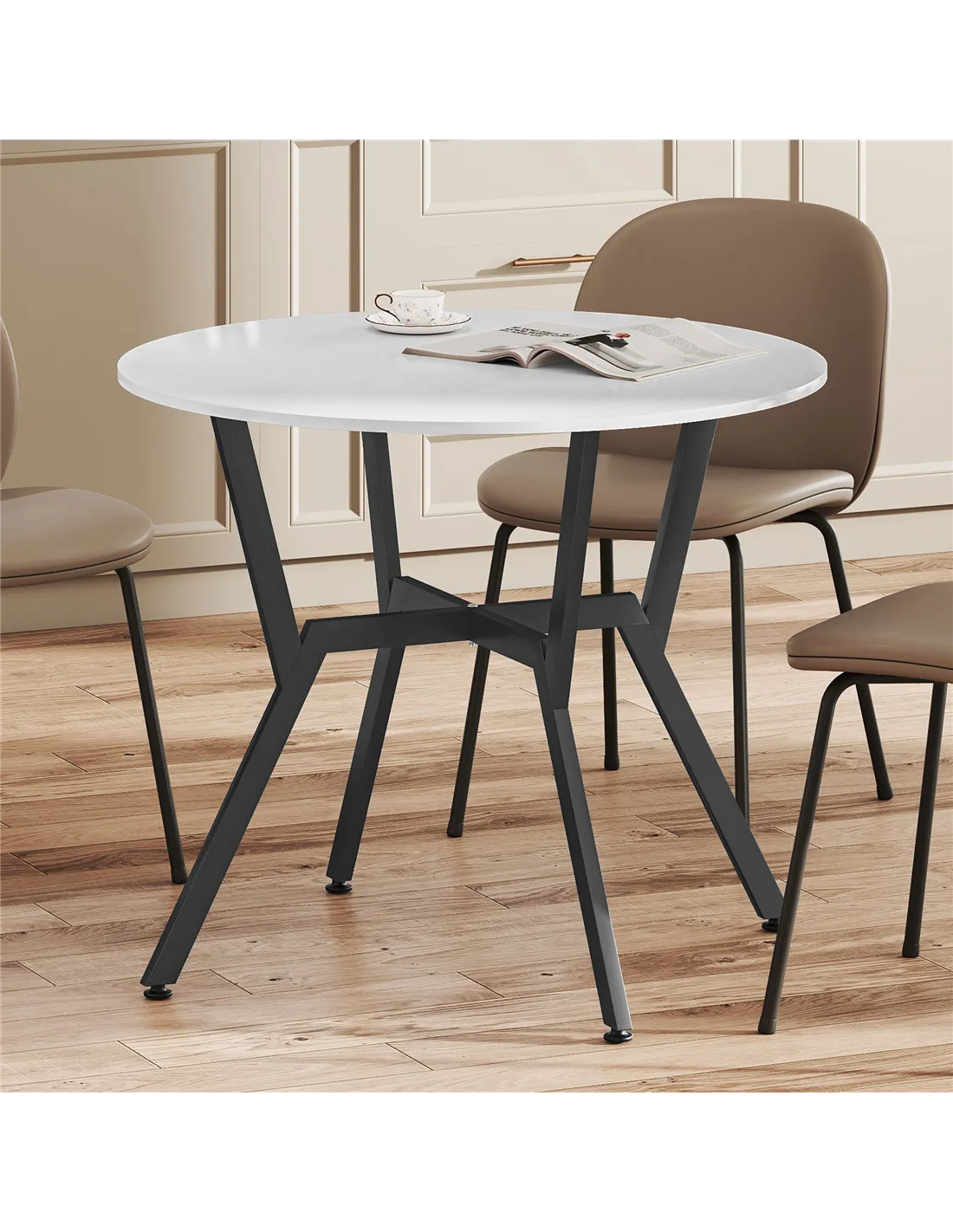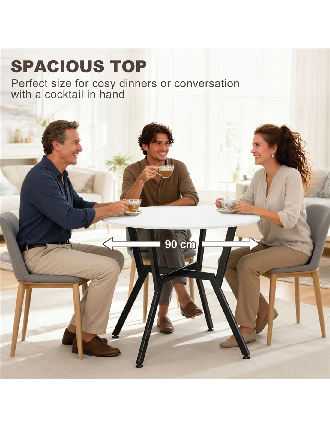 - A: This round dining table is designed to comfortably seat two people.