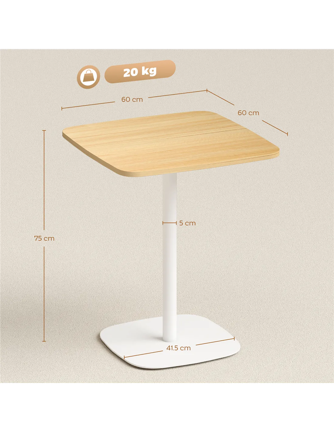 - Base Dimension: 41.5L x 41.5W cm