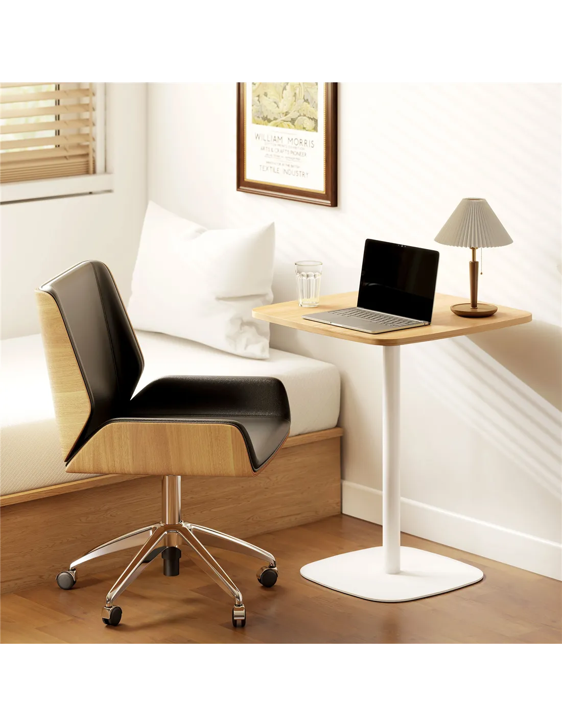 - Natural wood and white finish adds a modern, simple touch
