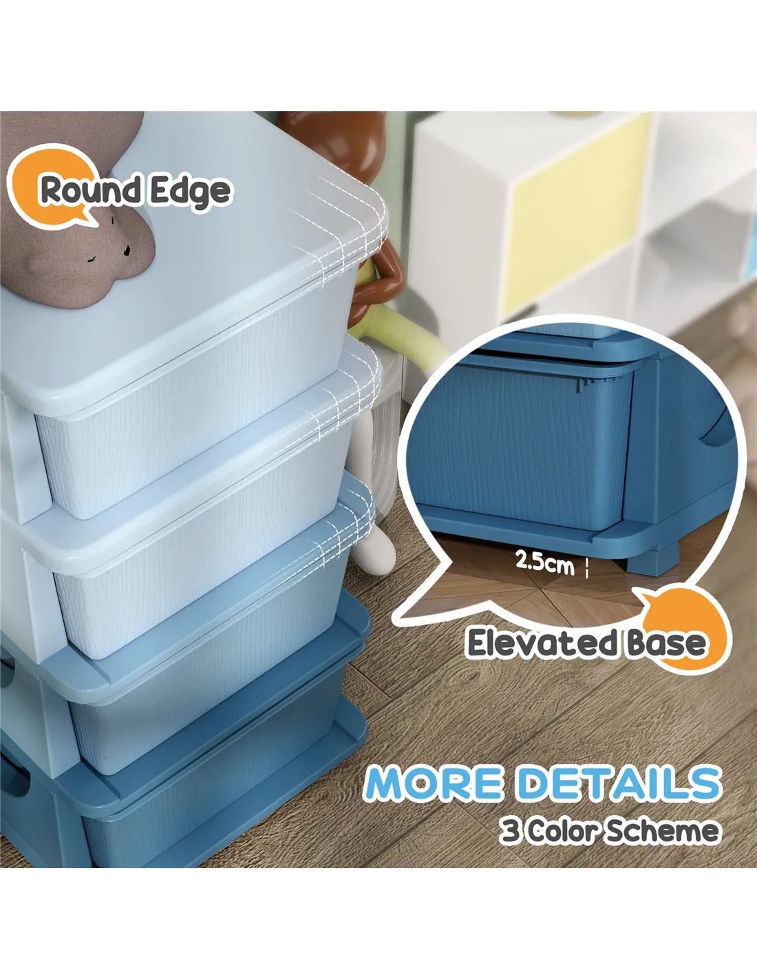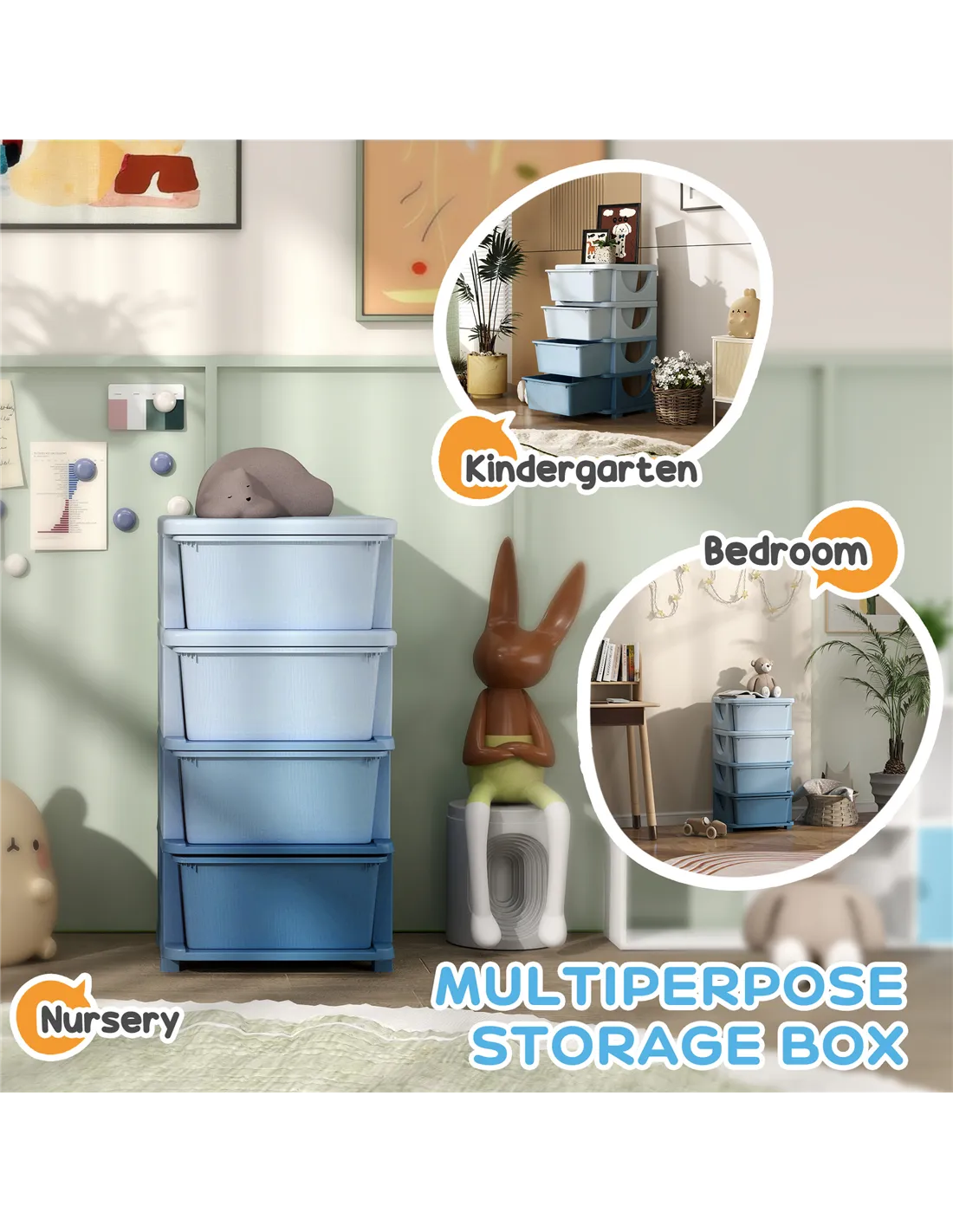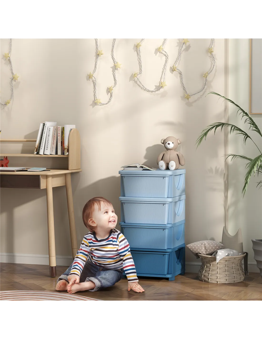 HOMCOM Four-Tier Kids Storage Boxes, with Four Drawers - Blue