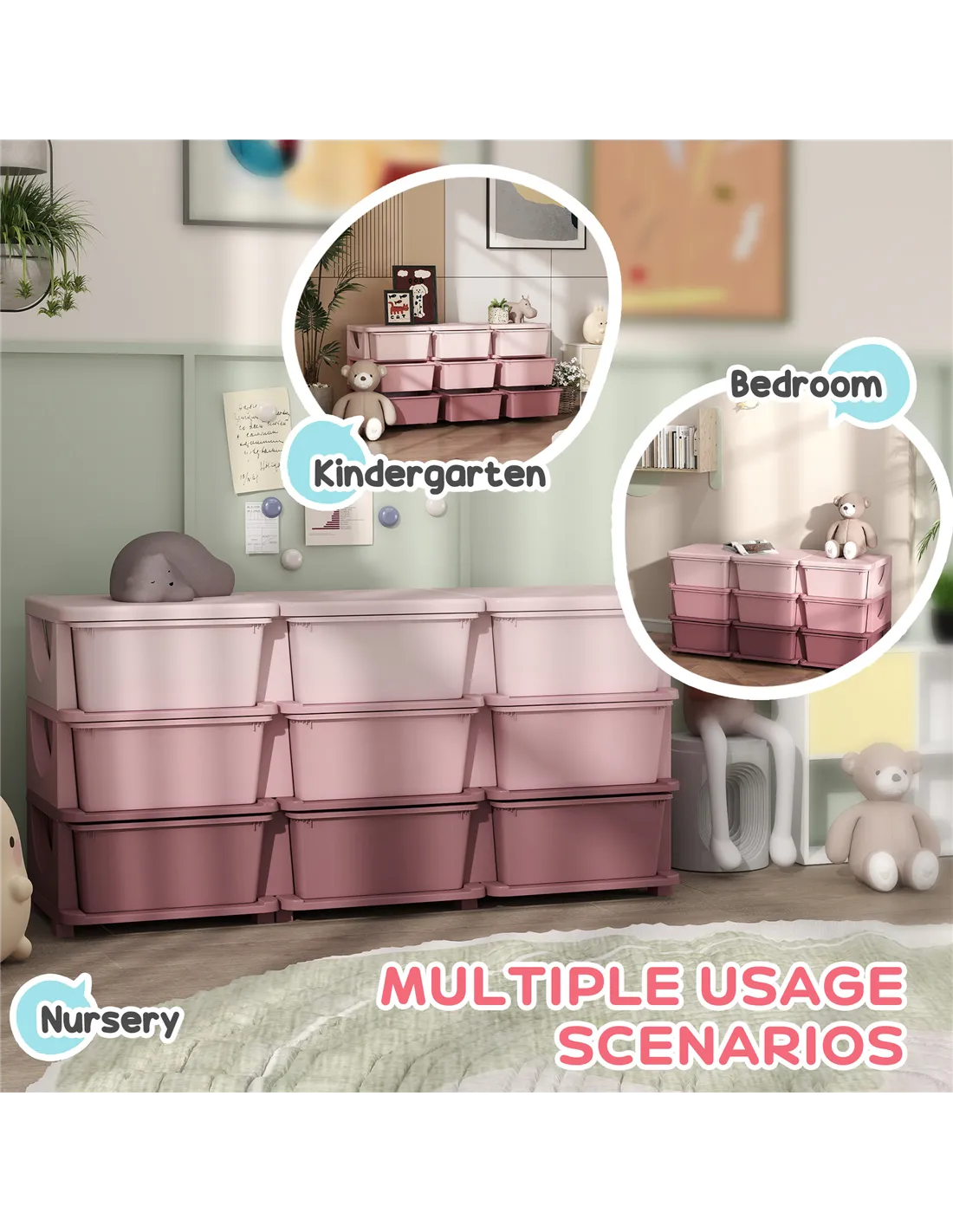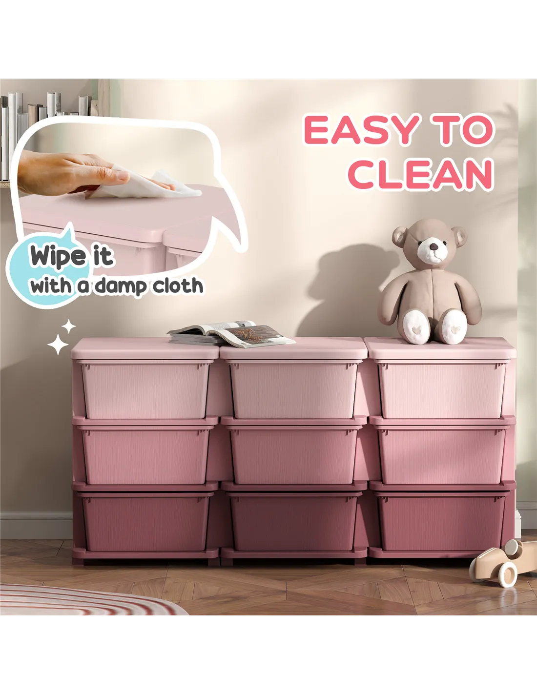 HOMCOM Kids Storage Unit, with Nine Drawers - Pink