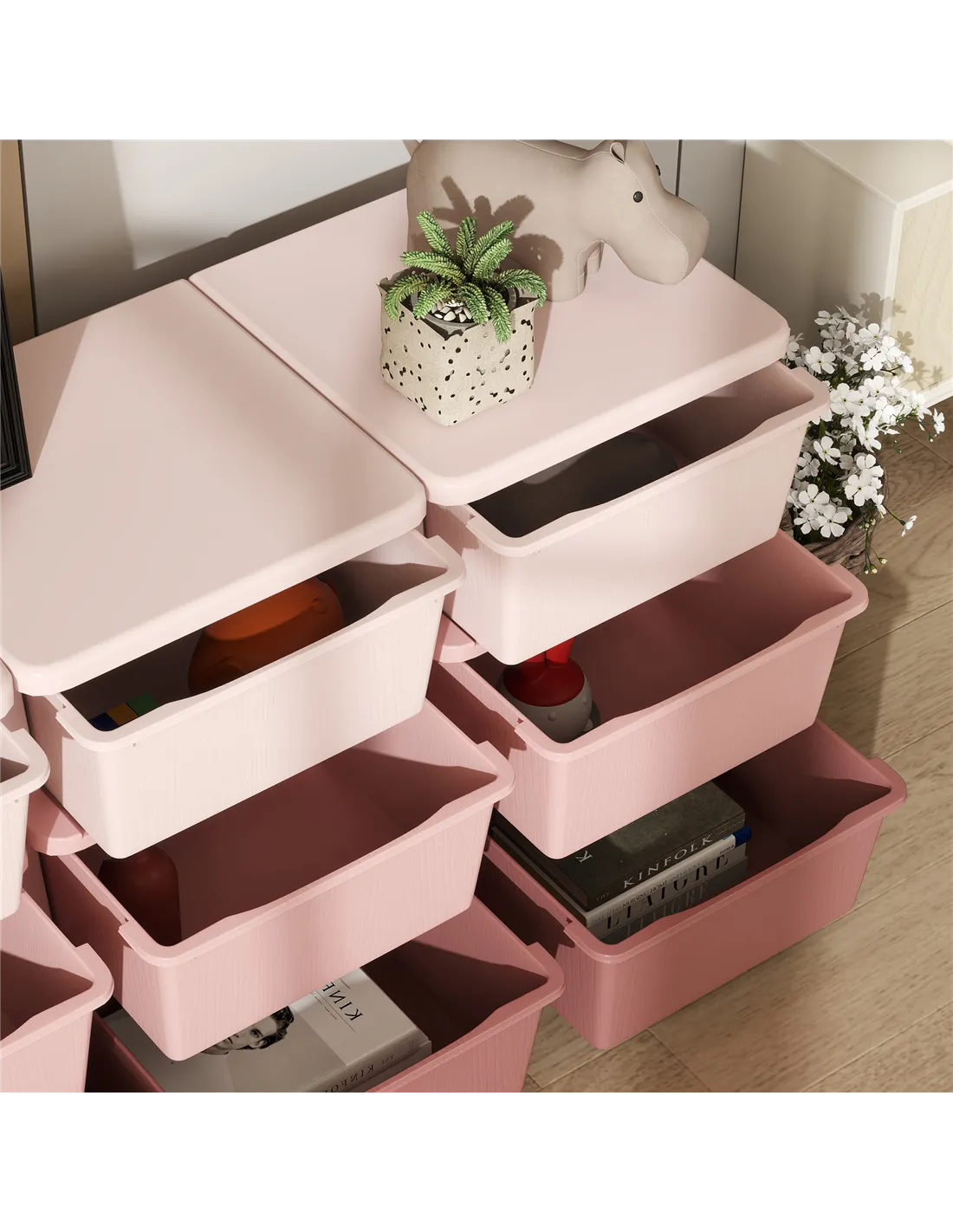 - Q: What are the overall dimensions of the pink storage unit?