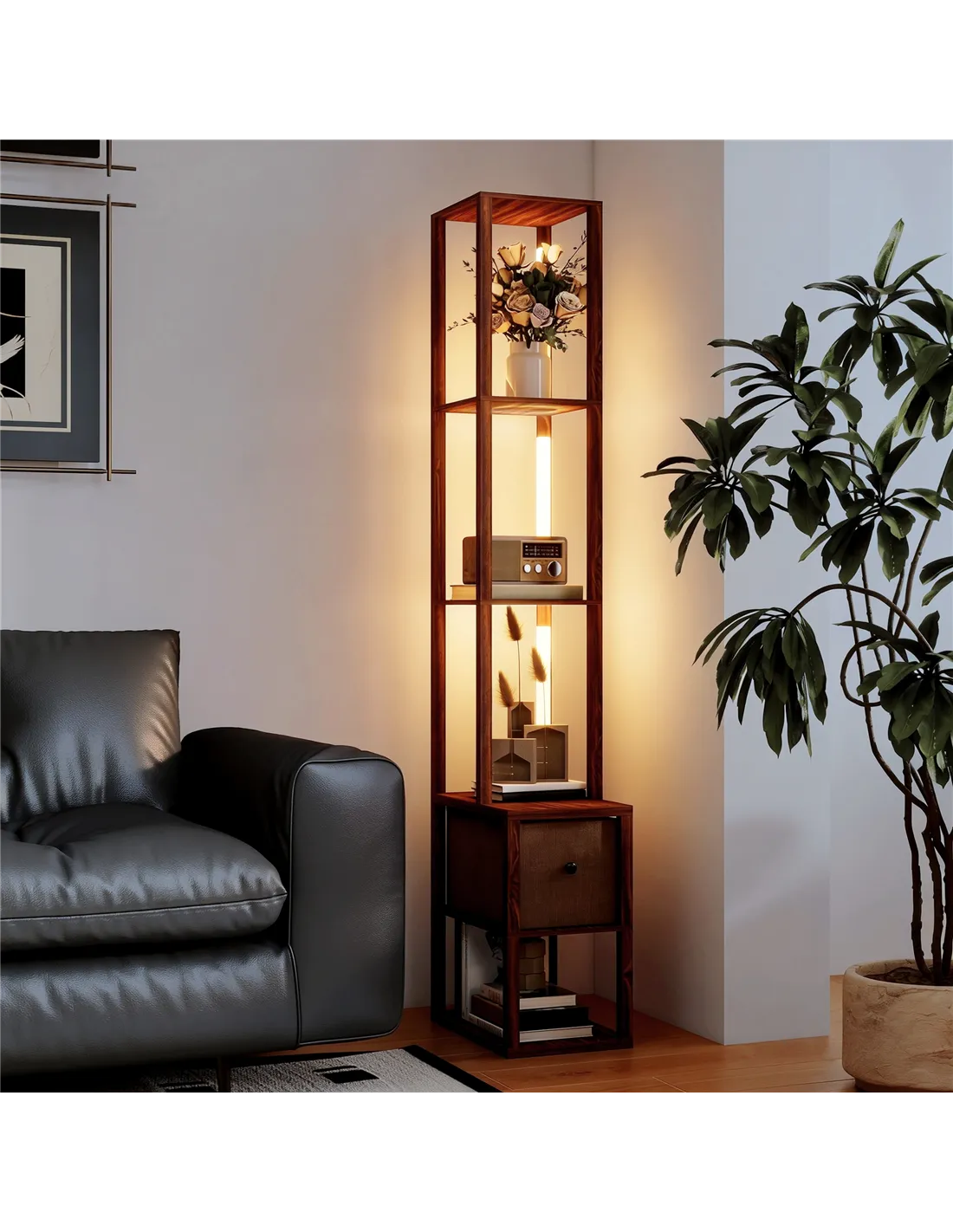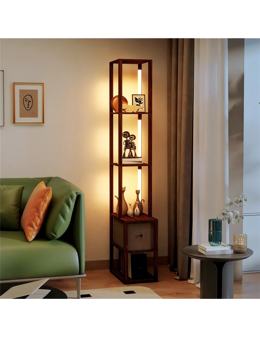 - 3-in-1 floor lamp integrates lighting, storage and display