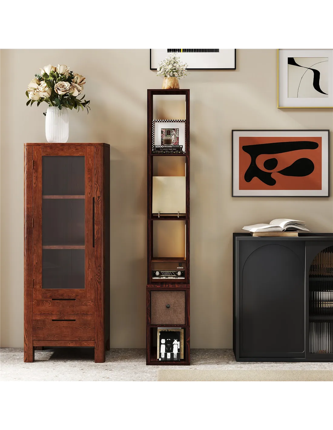 The HOMCOM Floor Lamp with Shelves in dark brown provides versatile lighting and storage for your home or office. This LED column standing lamp features multiple shelves and a fabric drawer, creating a practical 3-in-1 solution. The lamp offers warm white illumination with three adjustable brightness levels. A convenient foot switch allows quick control without bending. Its modern design integrates seamlessly into living rooms, bedrooms, and offices across the UK. This dark brown floor lamp offers display space for decor, accessible storage, and efficient ambient lighting. Its stable MDF and PVC veneer construction ensures long-term durability. You gain functional furniture with contemporary appeal, maintaining an organised space while enhancing its atmosphere.