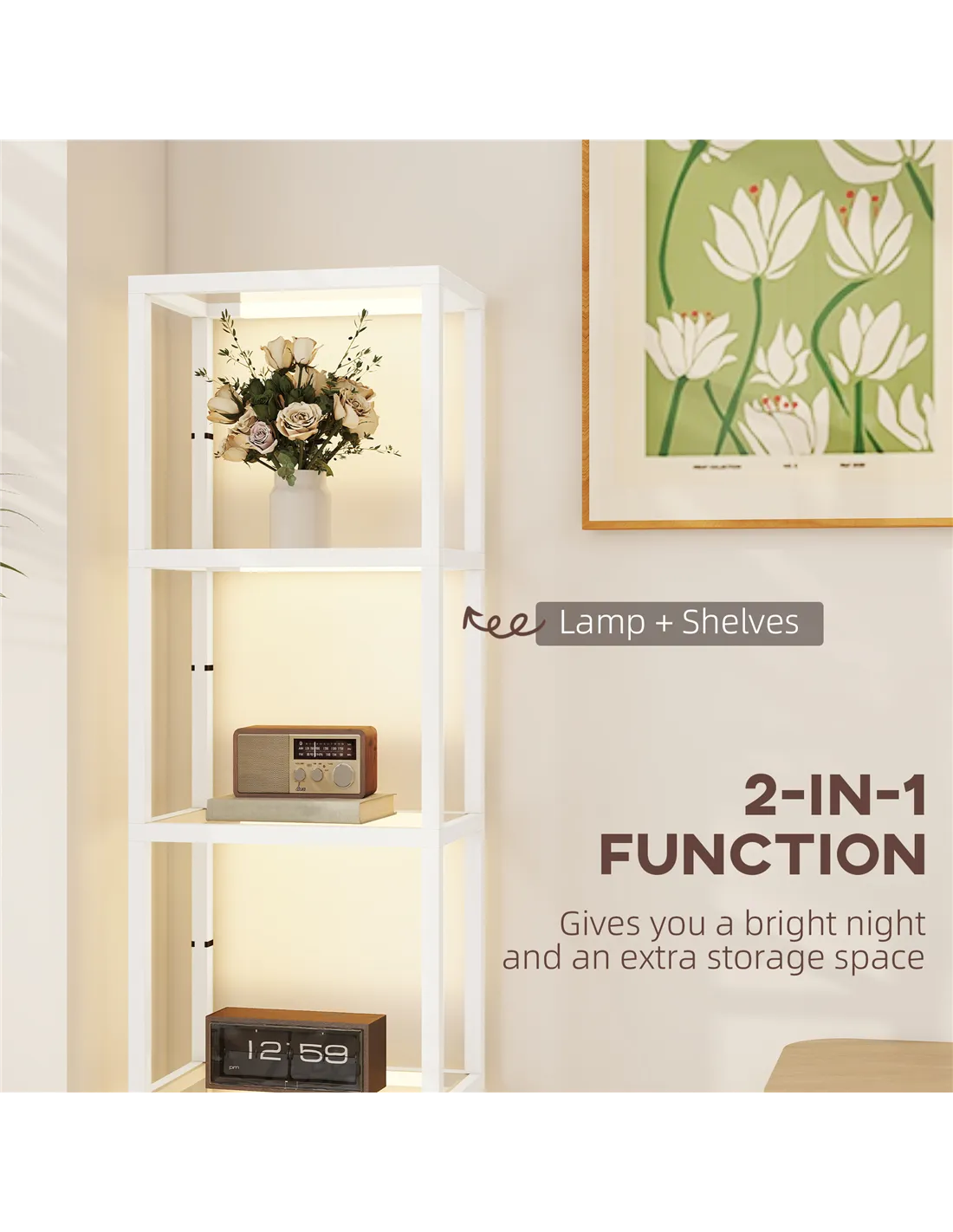 HOMCOM Four-Shelf Floor Lamp - White