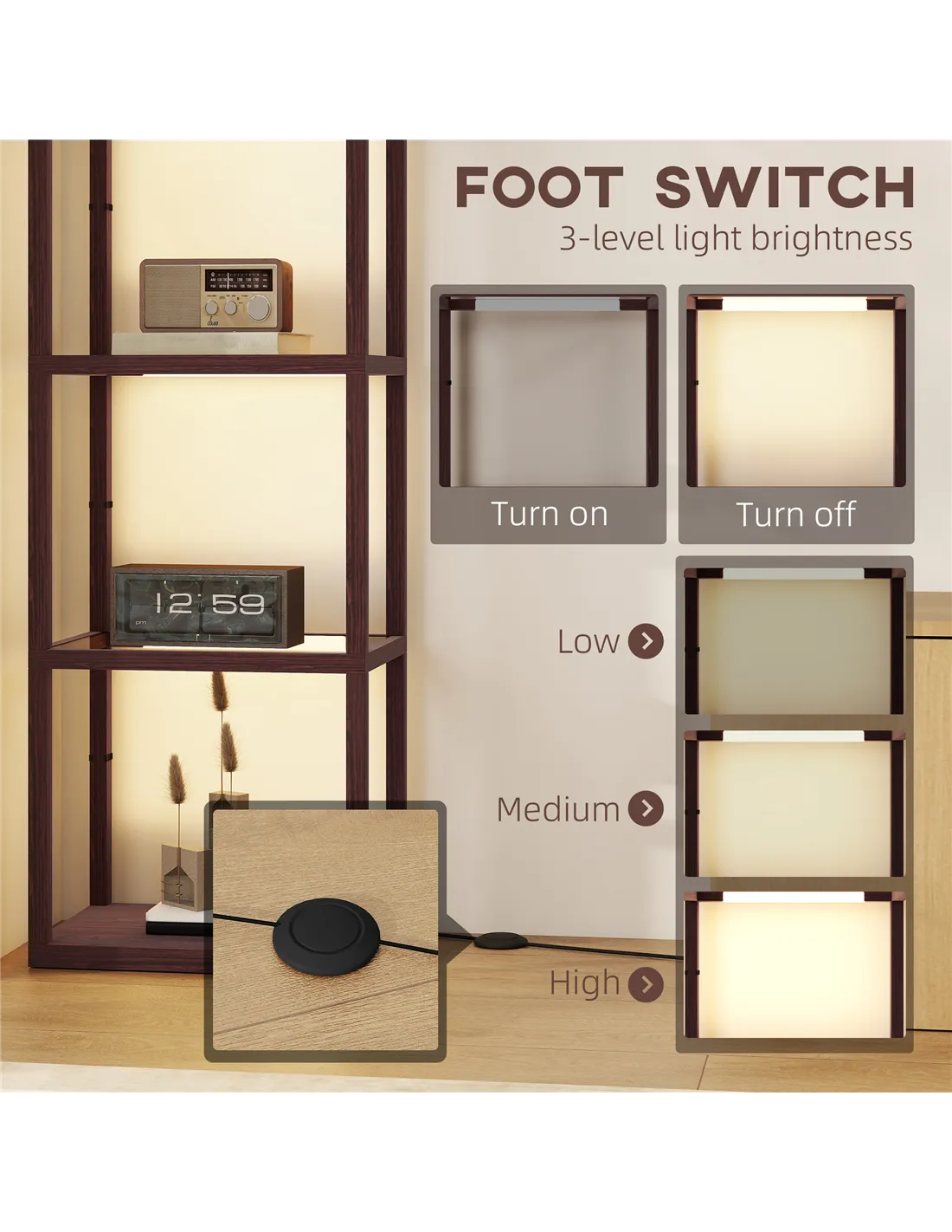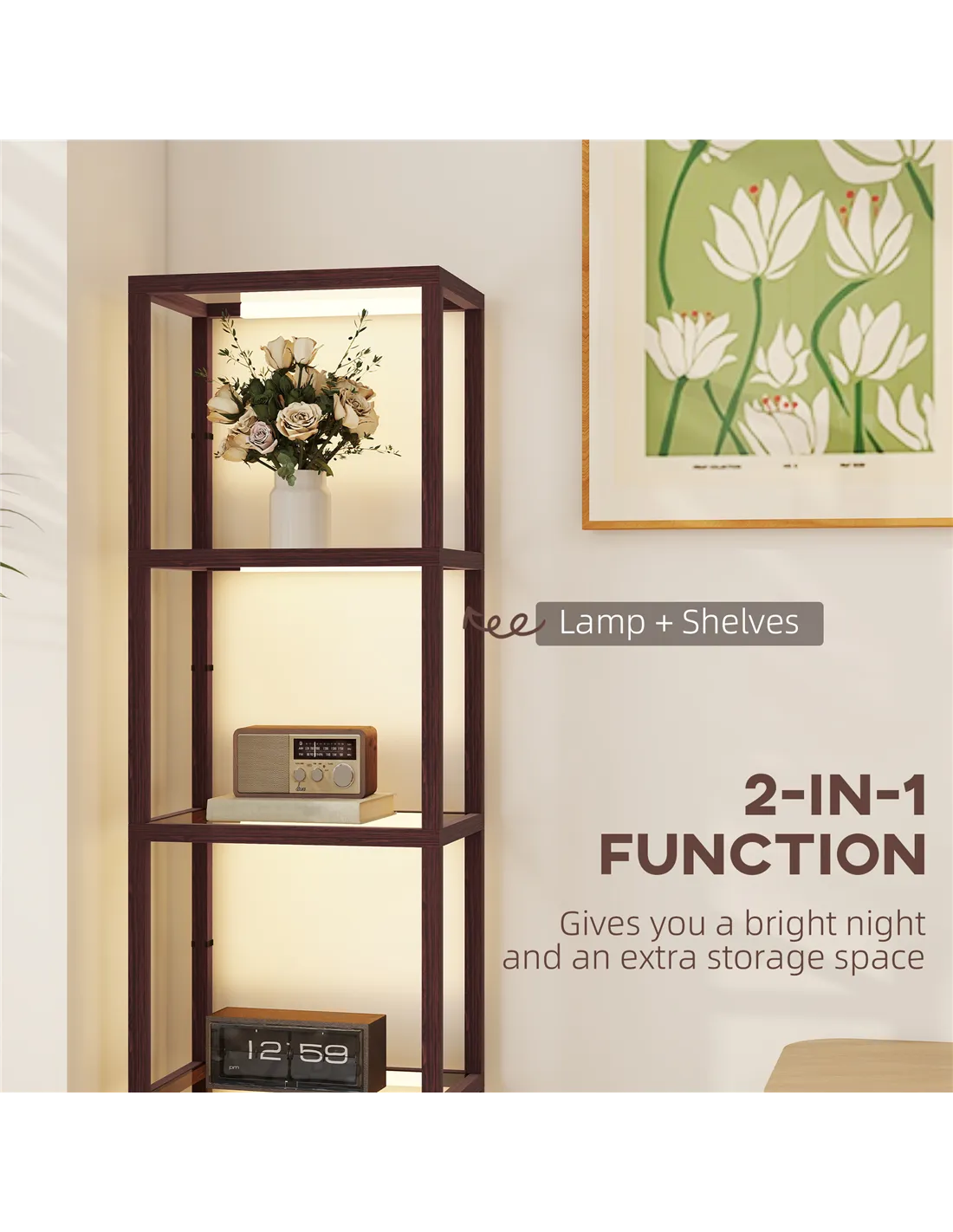HOMCOM Four-Shelf Floor Lamp - Dark Brown
