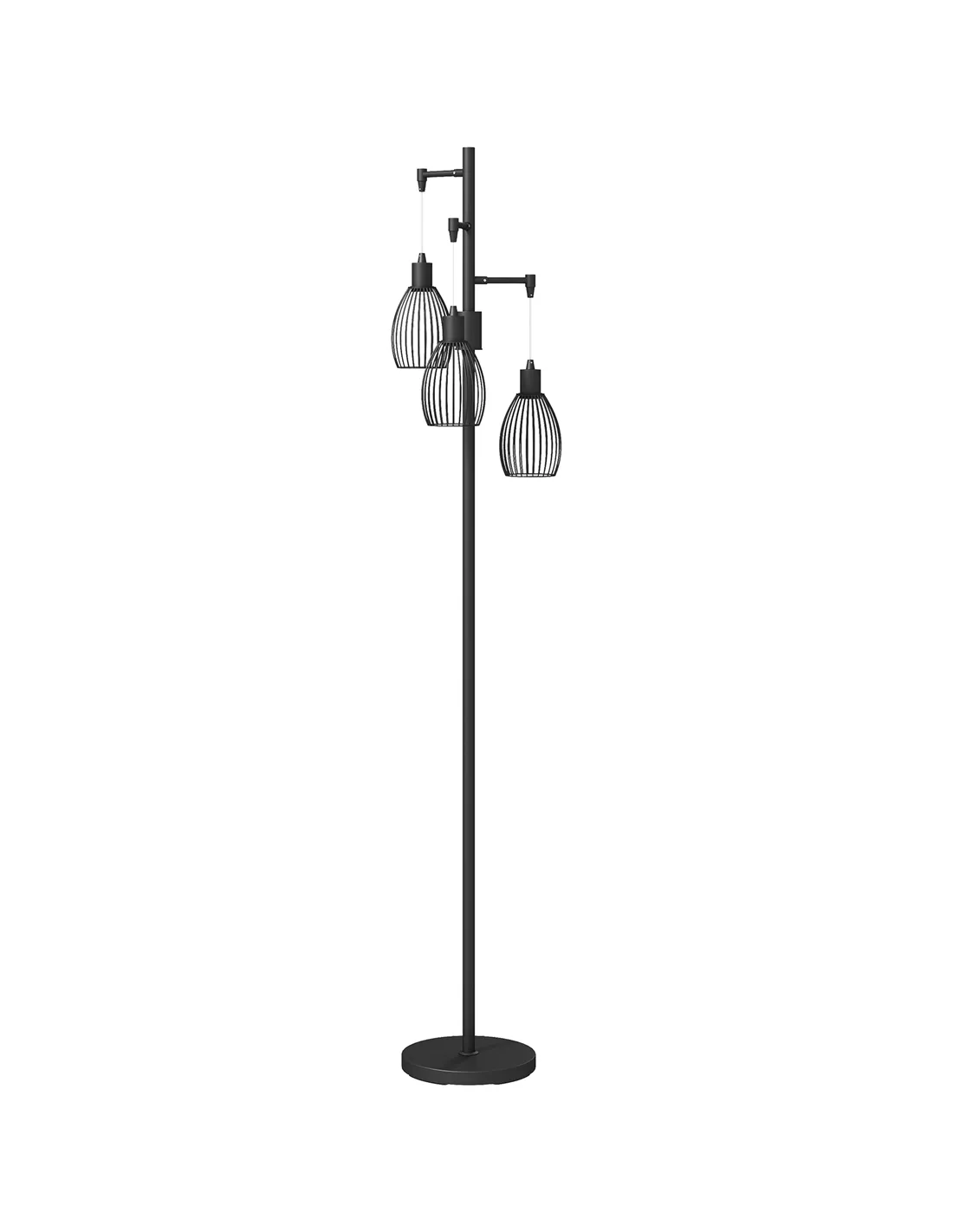 HOMCOM 3-Light LED Floor Lamp, 170cm Industrial Dimmable Standing Lamp with Steel Wire Cage Lampshades, 2700K for Living Room, Bedroom, Dining Room, Study, Black