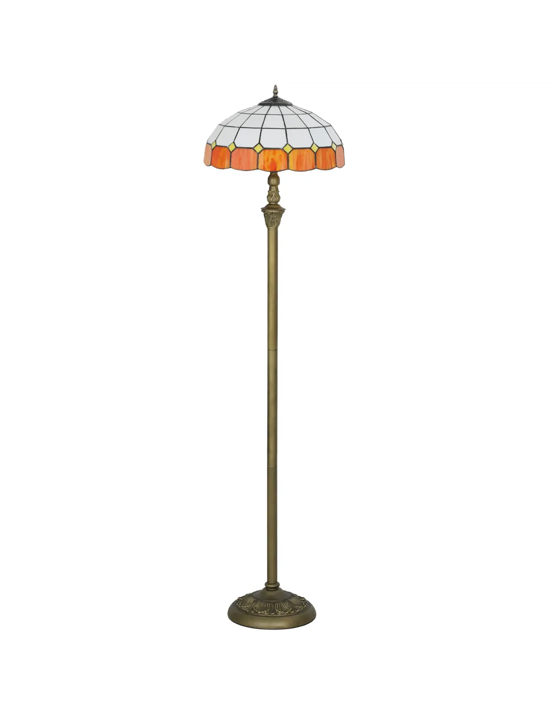 - Tiffany-style glass shade, with orange and white tiles