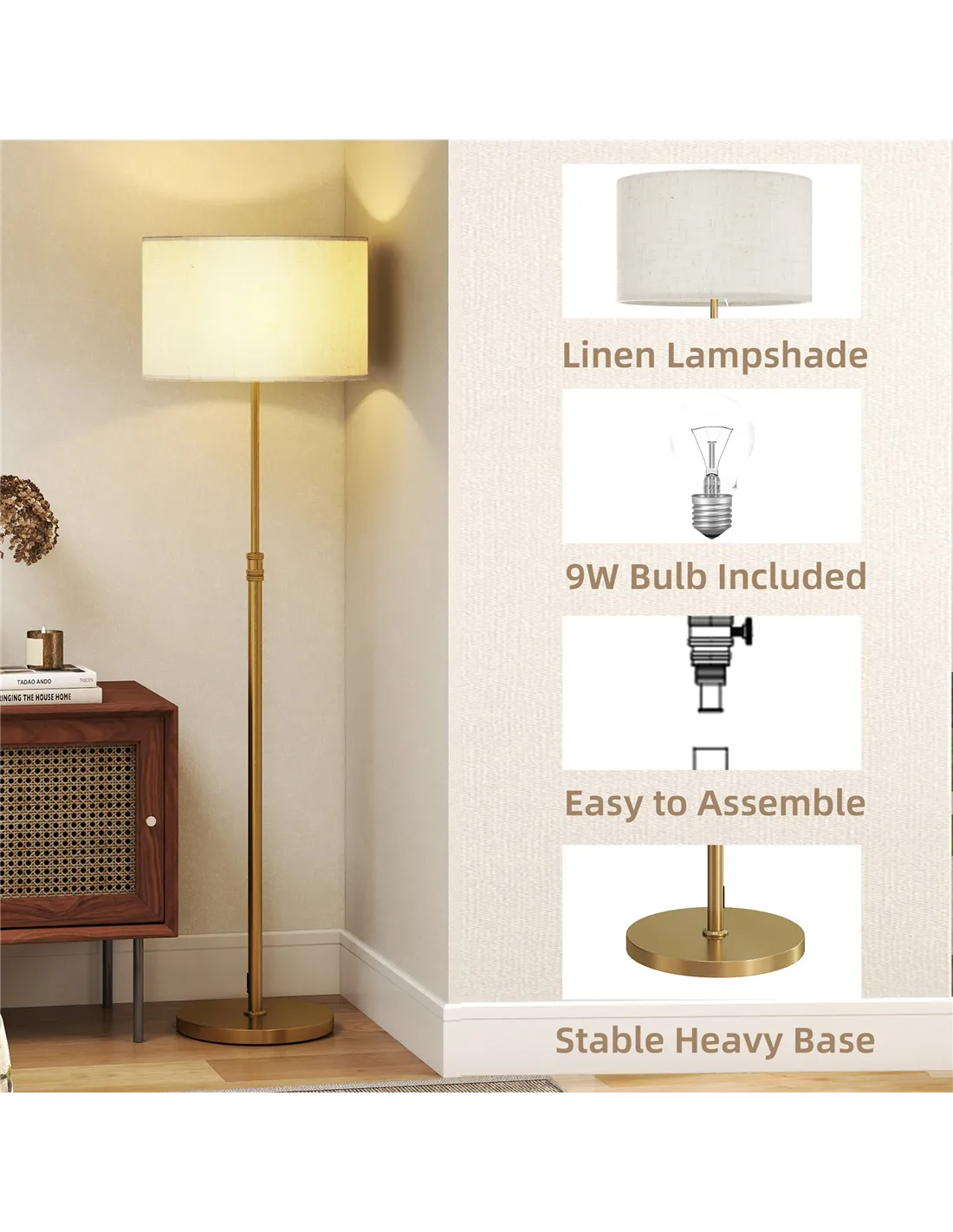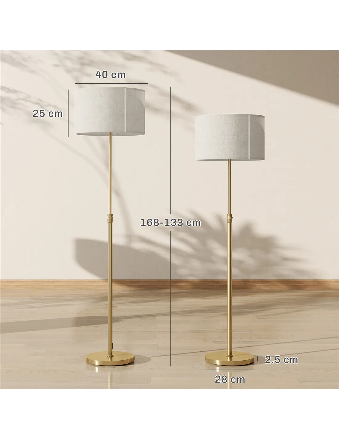 The HOMCOM Floor Lamp brings versatile lighting to your UK home. This height-adjustable standing lamp features a timeless gold tone finish and a natural linen shade, enhancing any living room, bedroom, or office décor. Adjust the light output precisely using the included remote control or the convenient foot switch. You control both brightness and colour temperature, ranging from a warm 3000K to a cool 6000K. This allows you to create ideal illumination for reading, relaxing, or working. The lamp's height adjusts from 133 cm to 168 cm, providing flexible lighting for any seating arrangement. Its heavy, stable base ensures safety and peace of mind. Assembly takes under 15 minutes by one person, offering a quick setup for immediate enjoyment of customised ambient light.