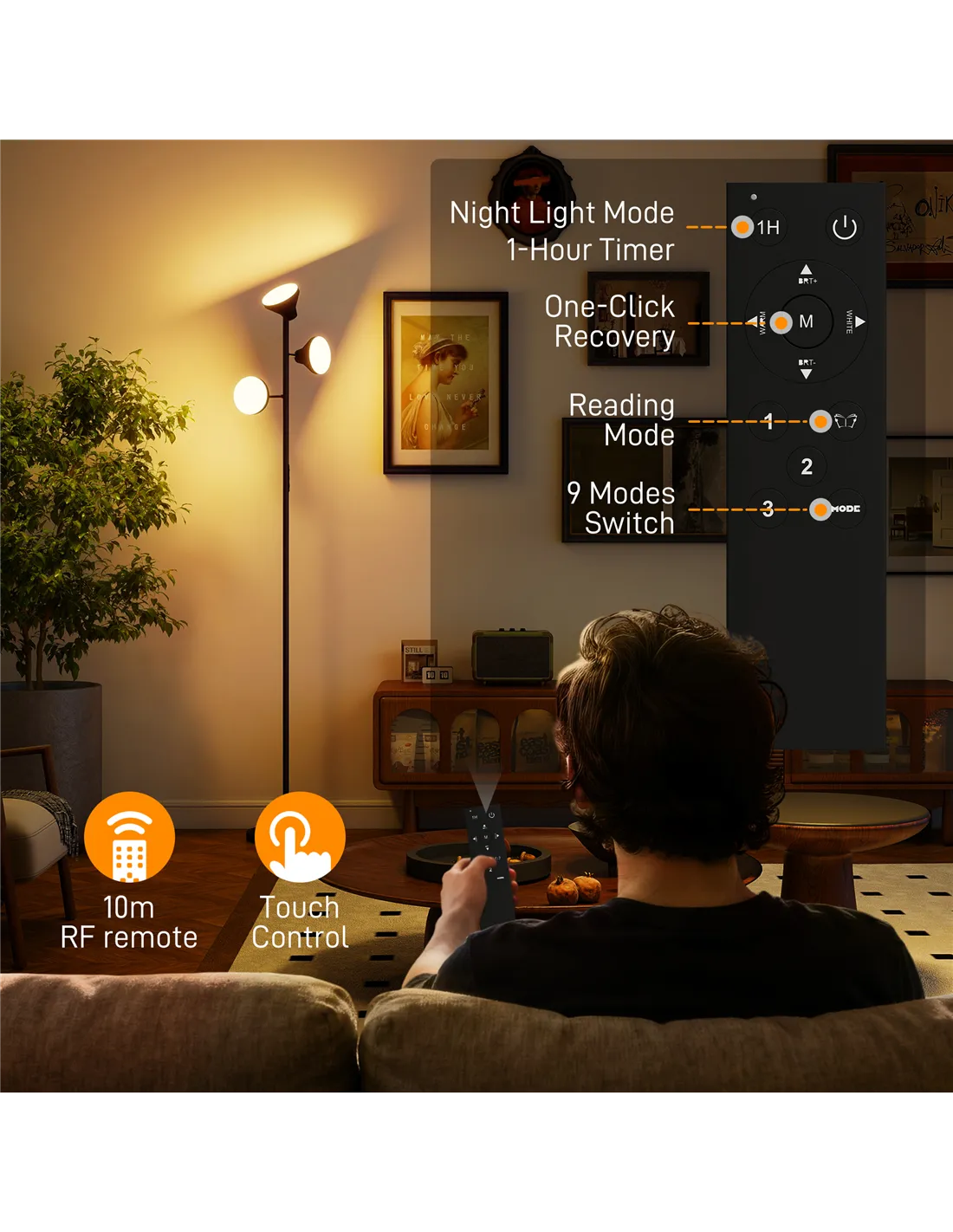 - Q: What are the lighting options available for this floor light?
