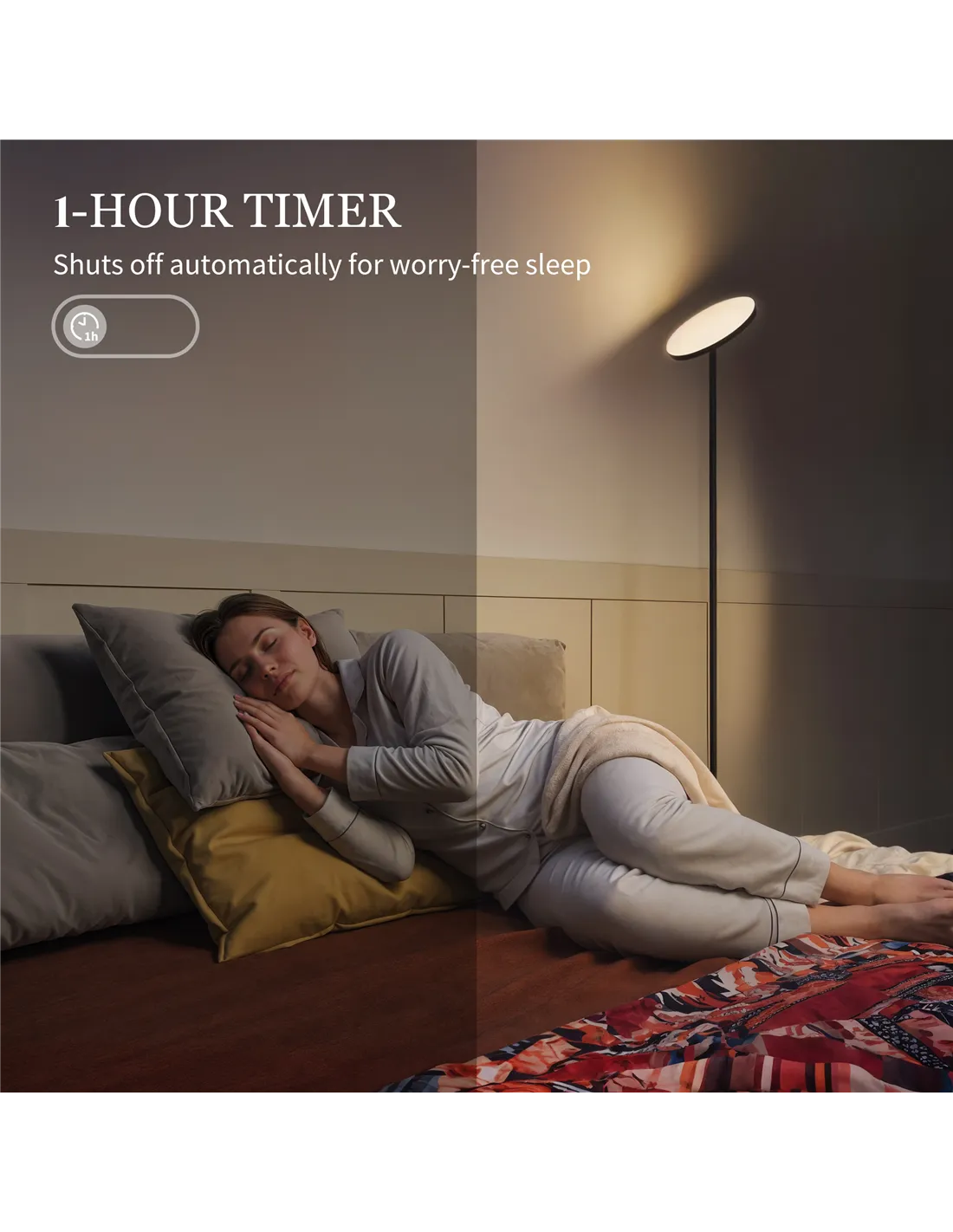 - A 1-hour timer lets you fall asleep without worrying about energy waste