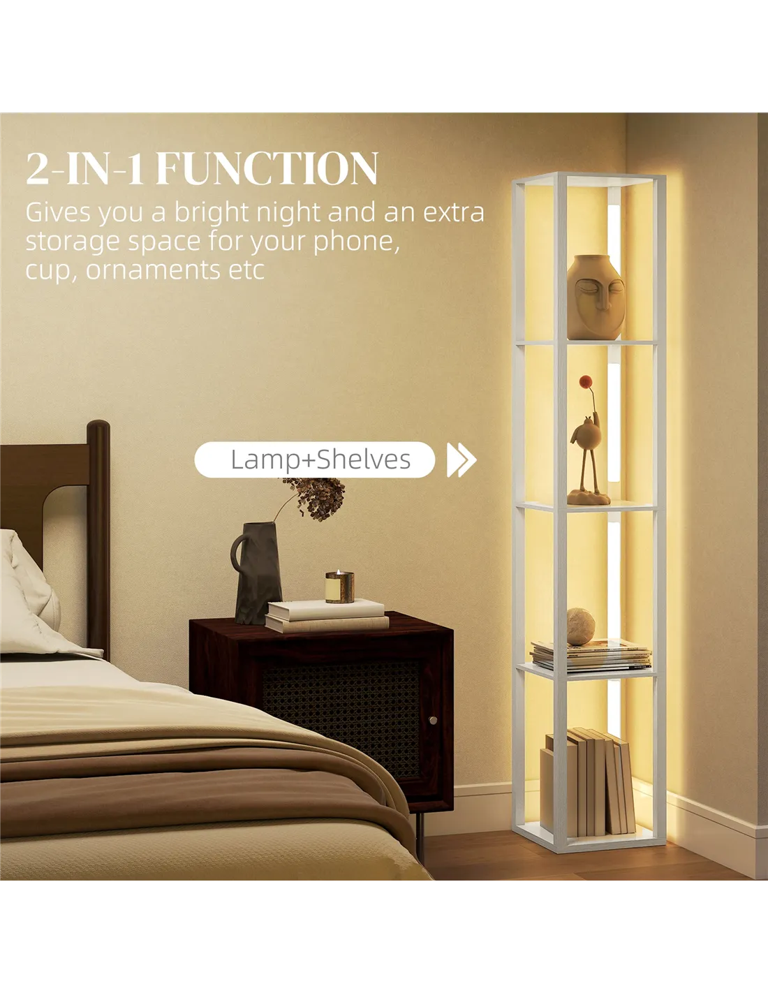 - A: Delivery terms for the HOMCOM Floor Lamp with Shelves are specified under the price on the product page.