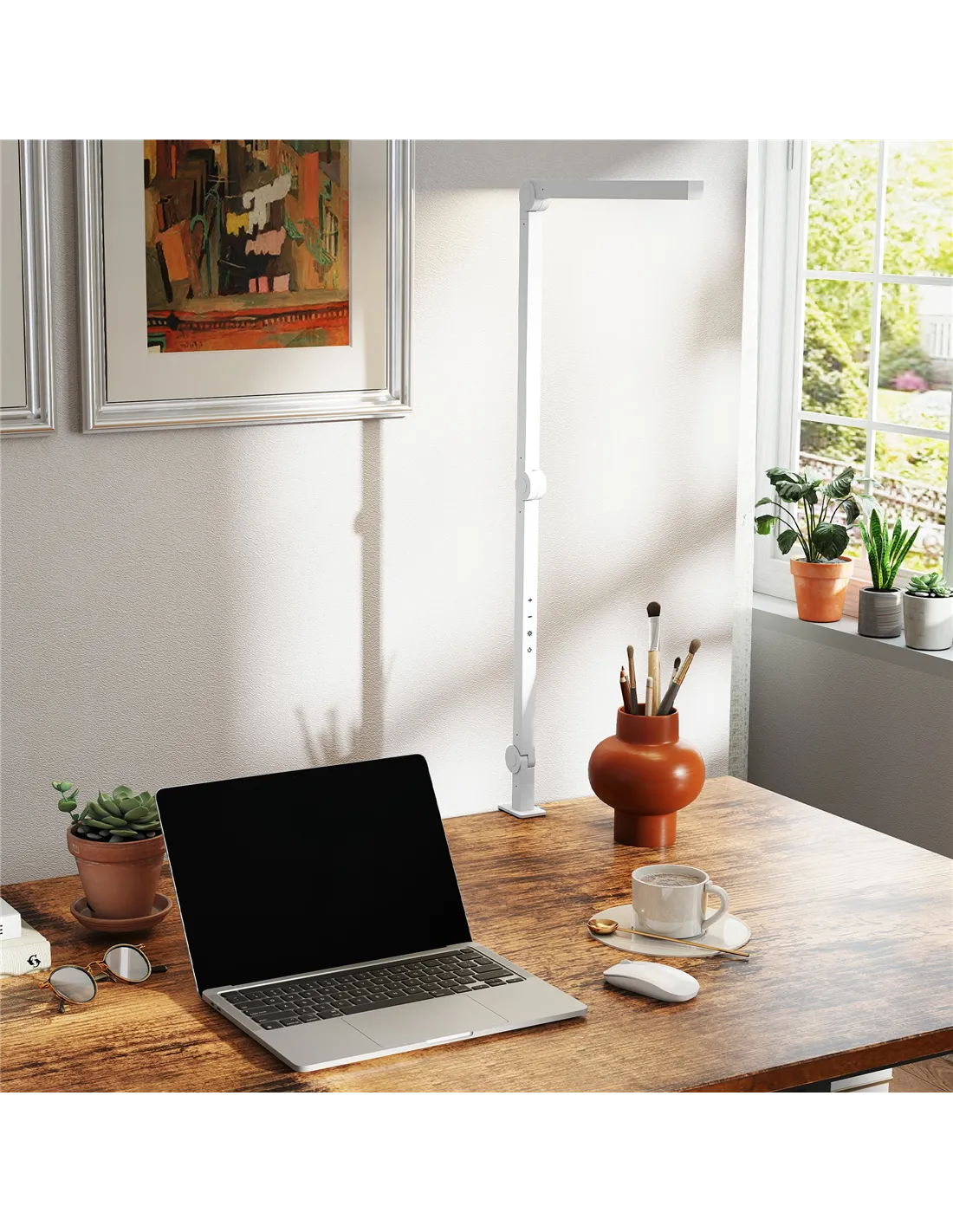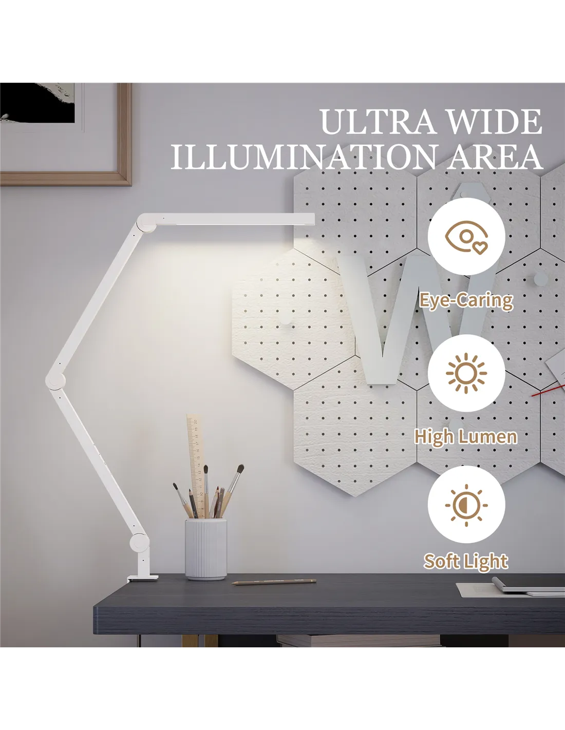 - Extra-long swing arm easily illuminates large desks and dual monitors