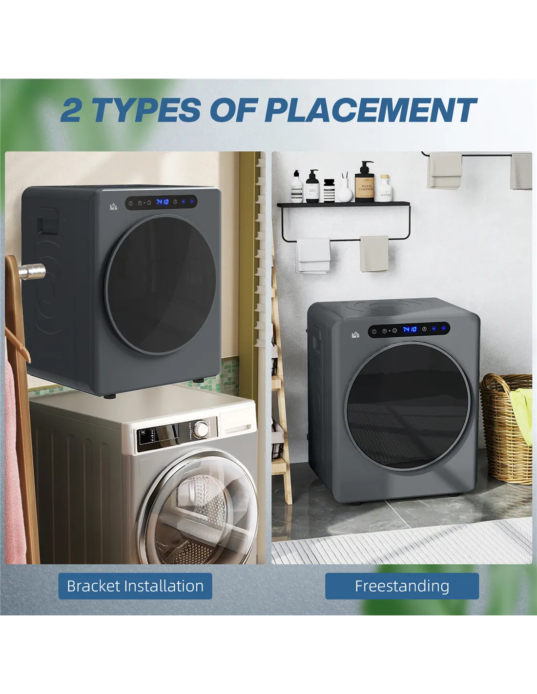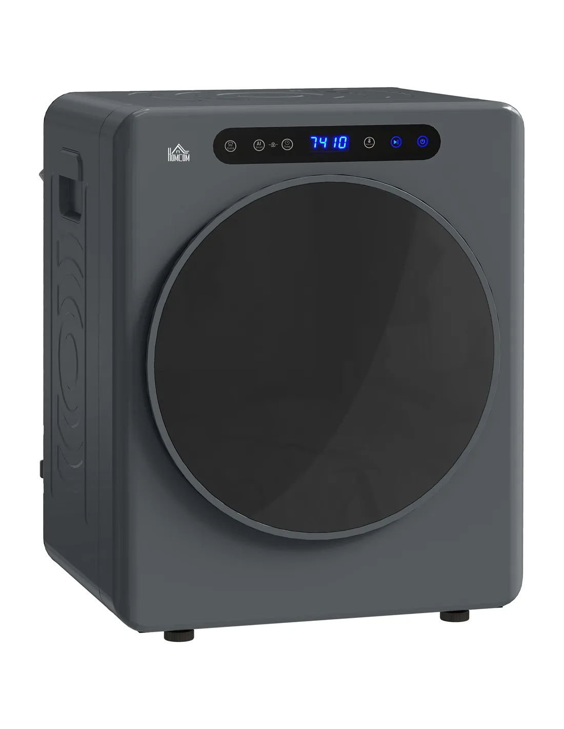 The HOMCOM 4kg Compact 40-60℃ Tumble Dryer in Grey provides an efficient laundry solution for UK homes. Its compact design integrates seamlessly into smaller living spaces, delivering effective drying without bulk. This appliance offers a 4kg capacity, accommodating up to 10 t-shirts or one bedding set. You set temperatures from 40-60℃. The 60°C temperature setting sterilises clothes, promoting hygiene. Two drying modes, extra dry and smart, adjust automatically. Reverse tumble action significantly reduces wrinkles, ensuring your clothes emerge fresh and soft. A child lock safeguards your household. Its touch-control digital display with a see-through door ensures straightforward operation. You use this dryer freestanding or stack it, offering versatile placement.