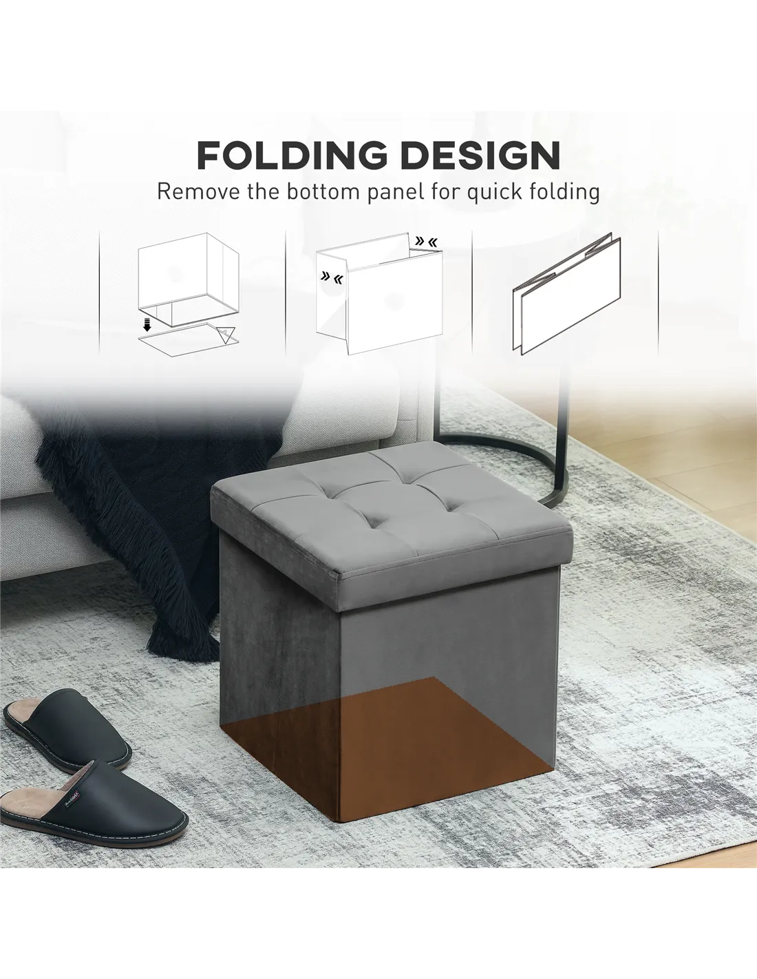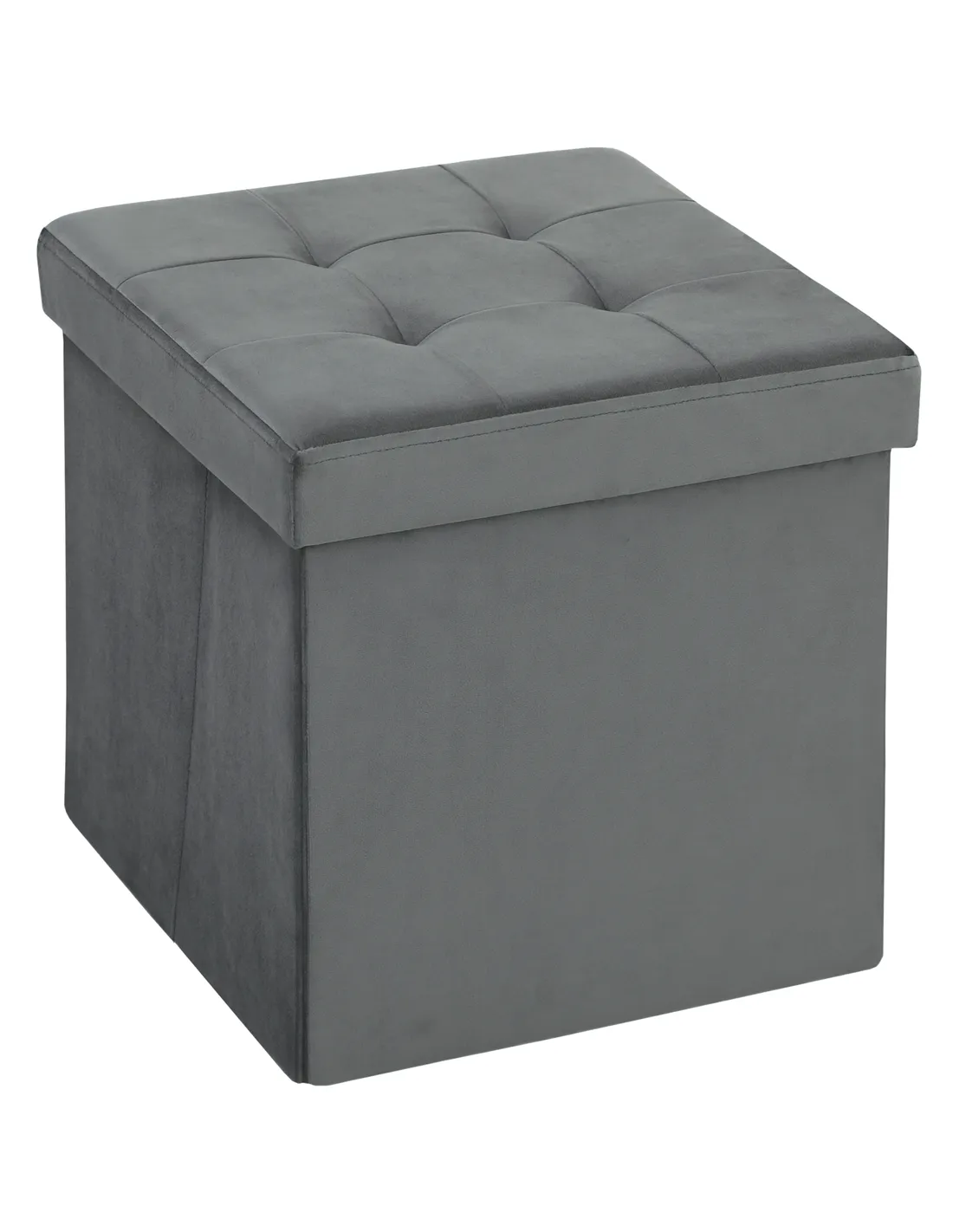HOMCOM Foldable Velvet-Feel Storage Ottoman - Grey