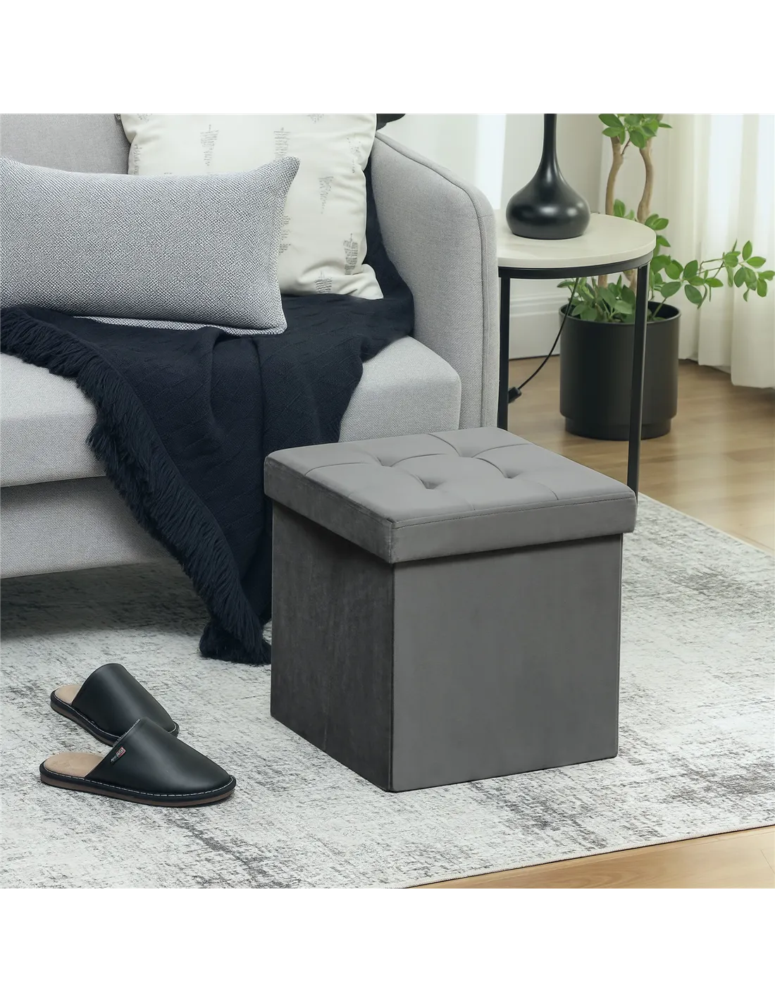 The HOMCOM Foldable Velvet-Feel Storage Ottoman in Grey provides an effective solution for maintaining an organised and comfortable home. This multi-purpose furniture offers 37.6 litres of internal storage, helping you manage clutter efficiently in any room. Crafted with high-density foam and a soft-touch velvet-feel fabric, it delivers comfortable extra seating or a supportive footrest. Its intelligent foldable design suits smaller living spaces, allowing for compact storage when not required. Assembly is straightforward, completing in just five minutes. This modern grey ottoman seamlessly integrates into bedrooms, living rooms, or entryways, enhancing your décor. FastDaddy presents this durable piece, supporting a maximum weight of 120 kg, for both style and practicality within your UK home.