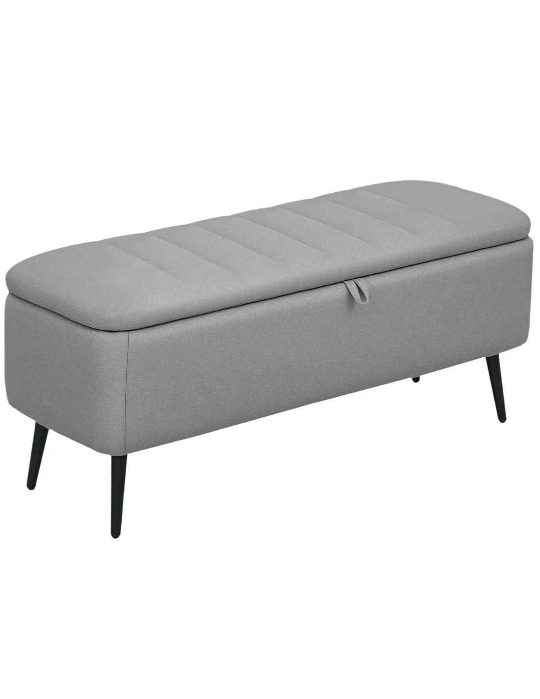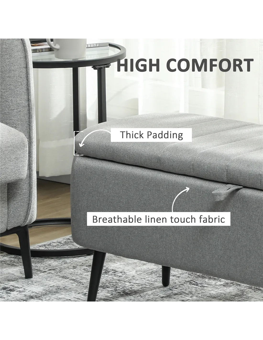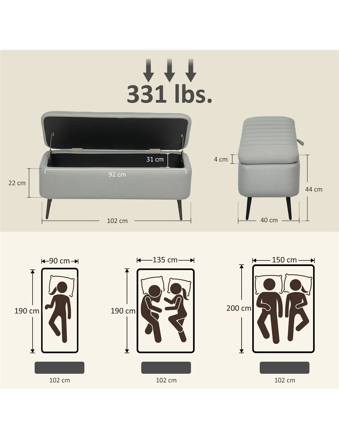 HOMCOM 92 x 31cm Linen-Look Storage Ottoman - Light Grey