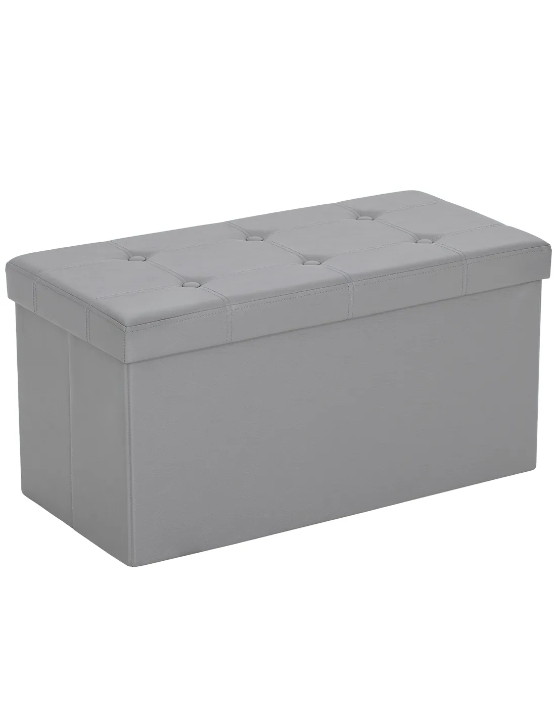 HOMCOM Storage Ottoman Bench, 89L PU Leather Folding Foot Rest Stool, End of Bed Bench, Easy Assembly, for Living Room, Bedroom, Entryway, Grey
