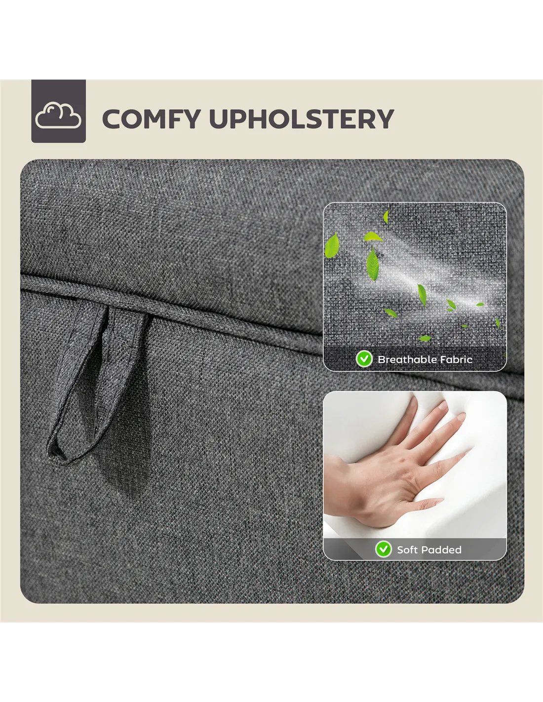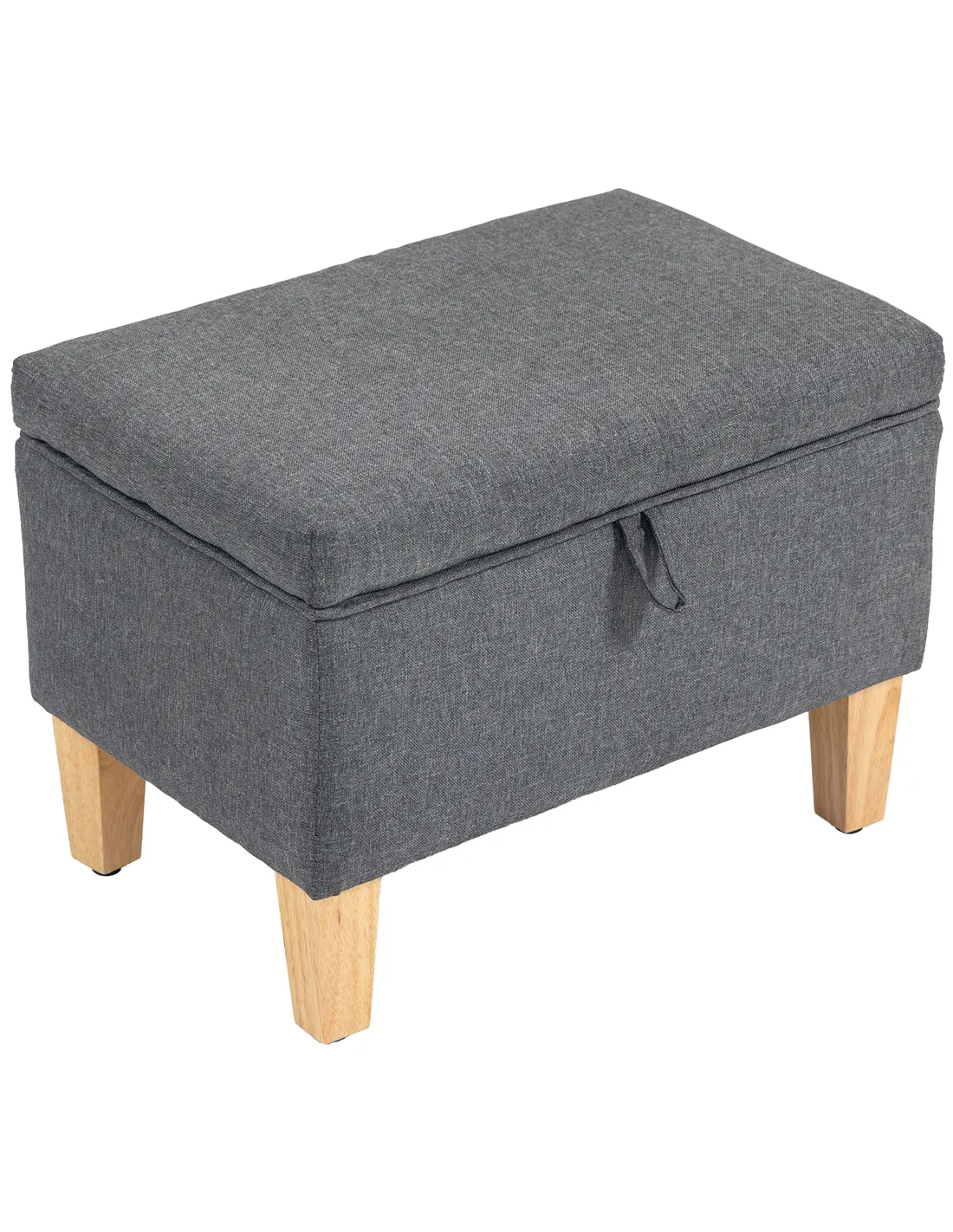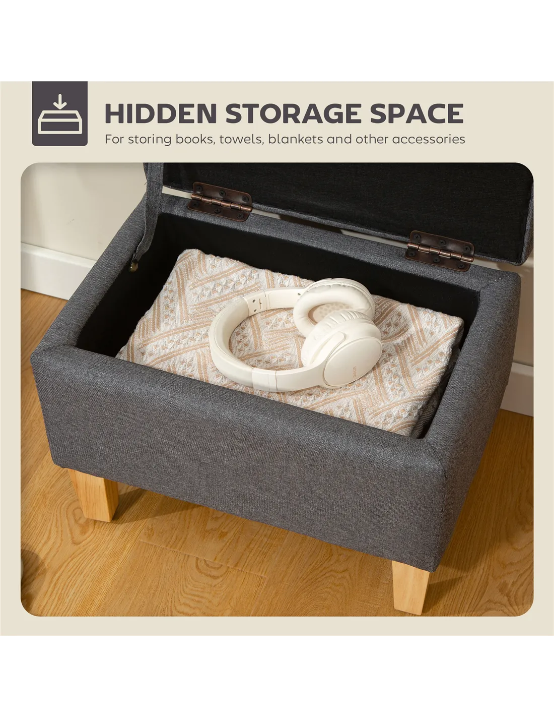 HOMCOM 16L Linen Storage Ottoman Padded Footstool with Rubberwood Legs for Storage Box, Bed End, Shoe Bench, Seating, Charcoal Grey