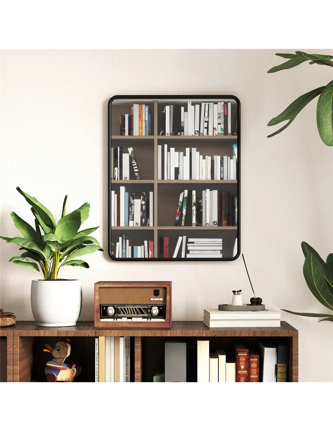 - A: The HOMCOM Rectangular Wall Mirror features a strong metal frame, an MDF backboard, and high-definition glass, all contributing to its durability and stability.