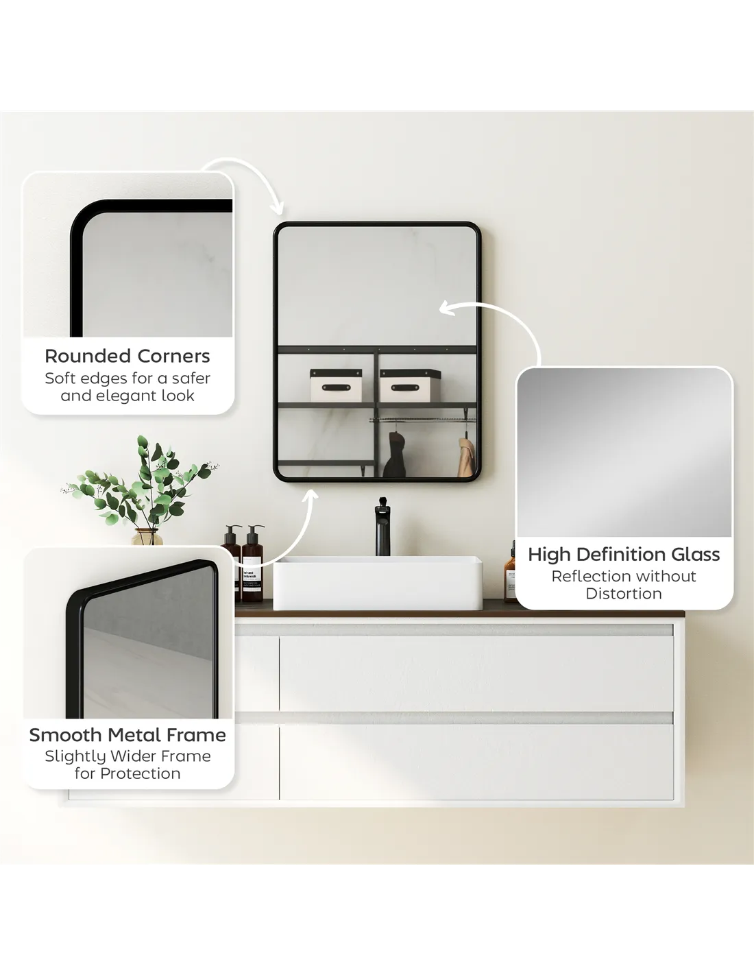 - High-definition glass provides a clear, distortion-free reflection of your true image