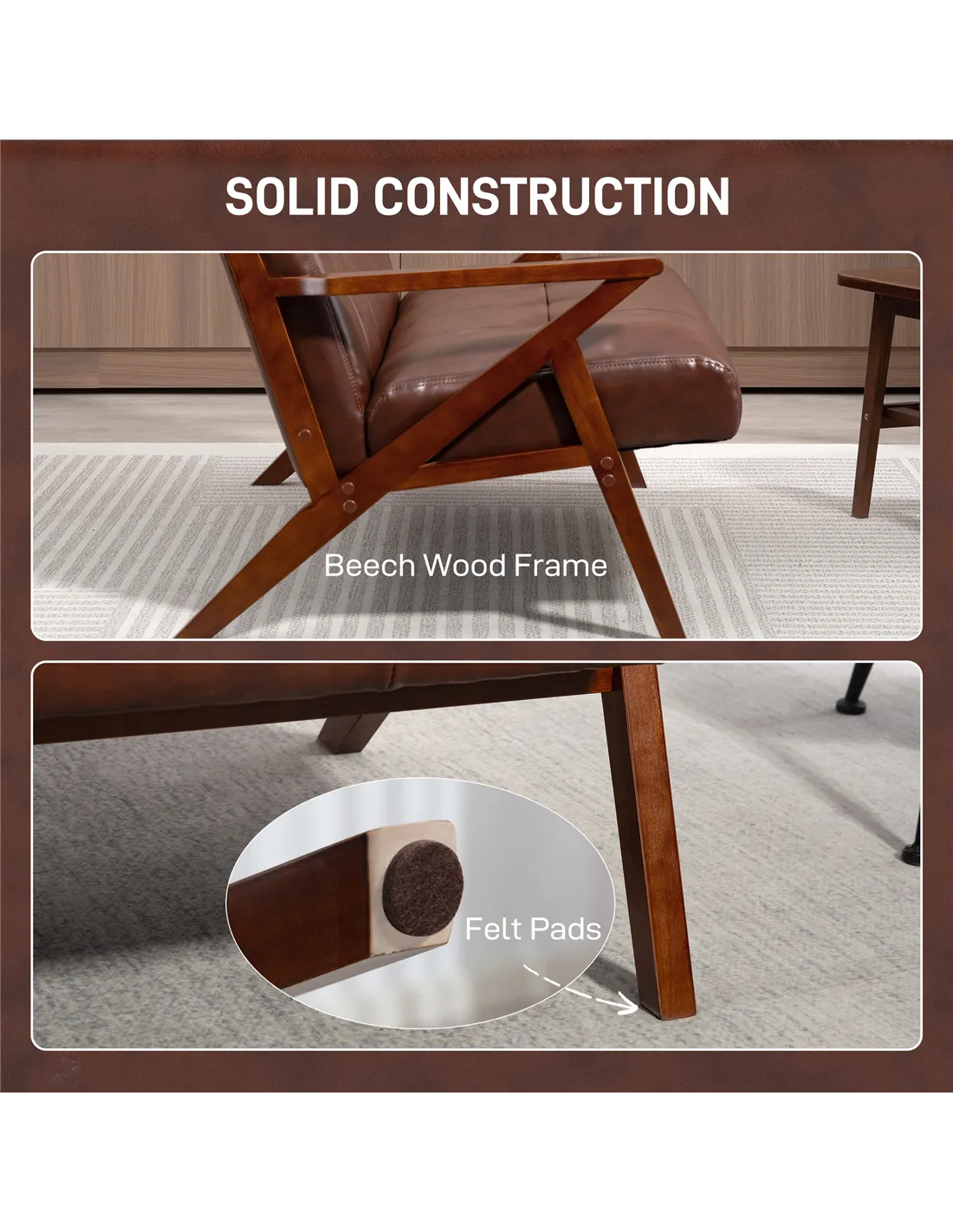 - Material: PU Leather, Foam, Beech wood