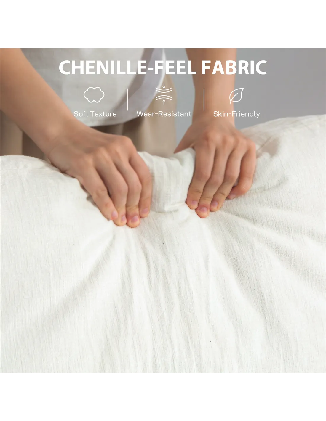 - Chenille-feel fabric upholstery offers a luxurious touch