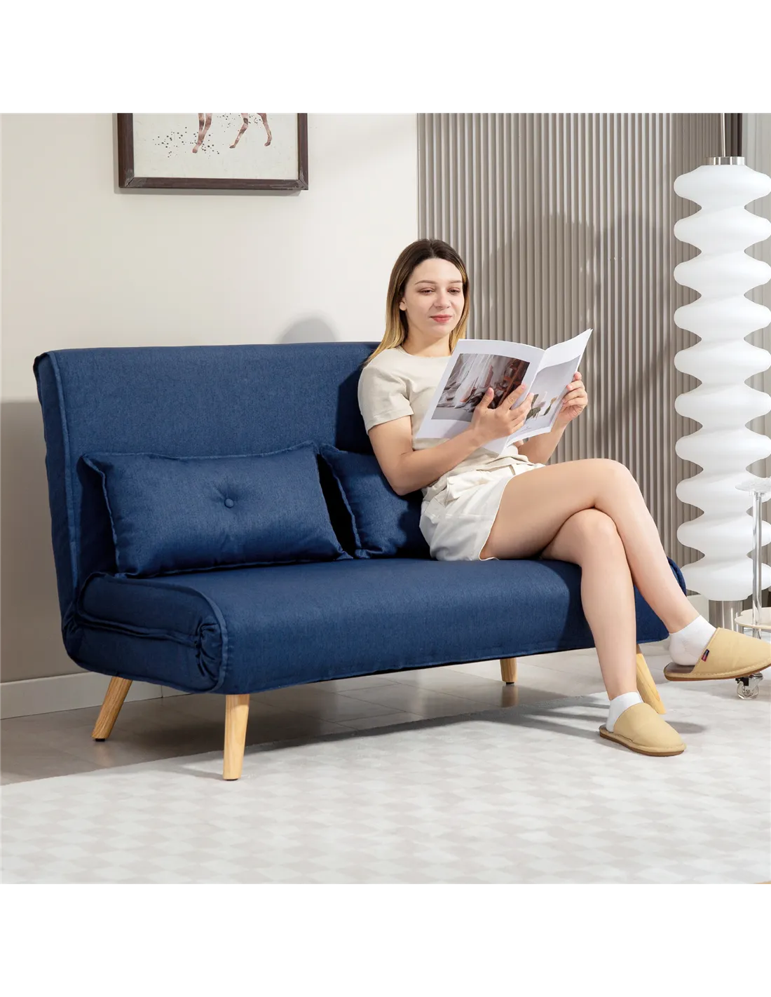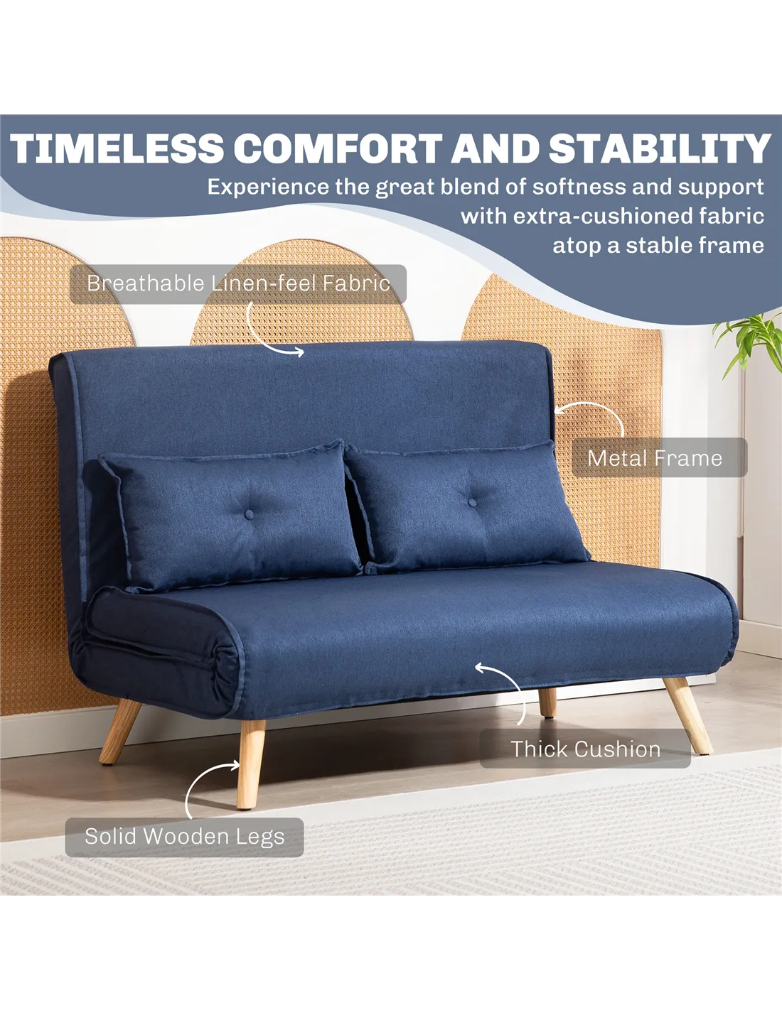 HOMCOM Two-Seater Linen-Look Sofa Bed - Dark Blue